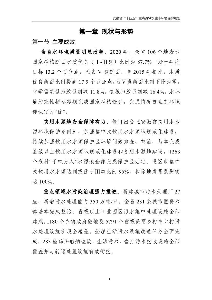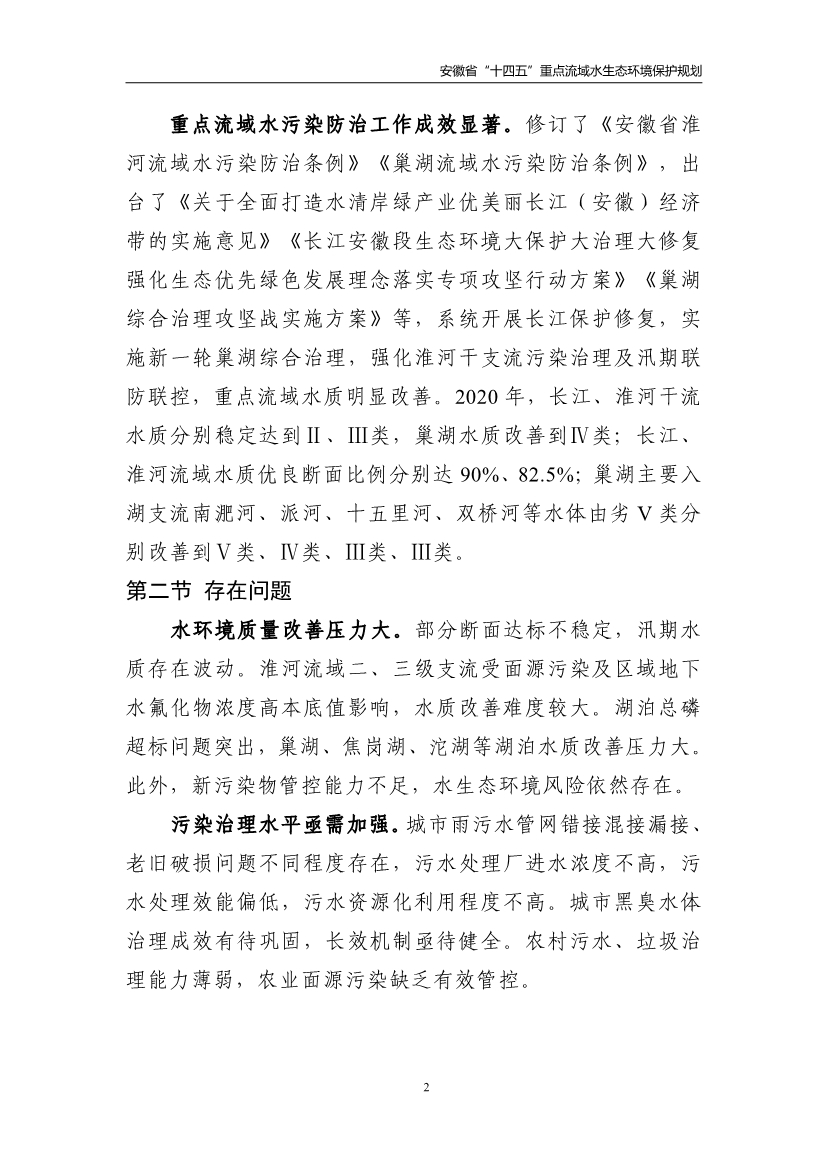 《安徽省“十四五”重點(diǎn)流域水生態(tài)環(huán)境保護(hù)規(guī)劃》
