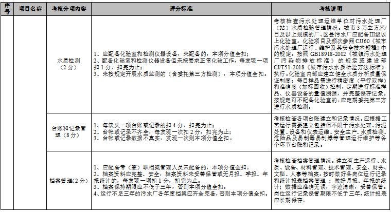 第十六條 中心城區(qū)污水處理設(shè)施的月度考核由市排水服務(wù)中心牽頭、市供排水監(jiān)測中心參與,通過聽取匯報(bào)、查閱資料、檢查現(xiàn)場等方式,對中心城區(qū)污水處理設(shè)施運(yùn)行管理情況進(jìn)行量化賦分。