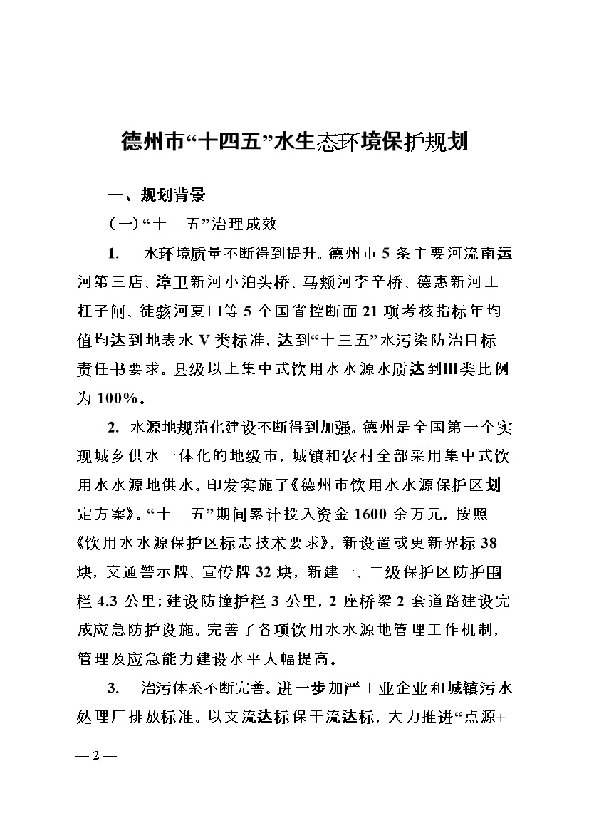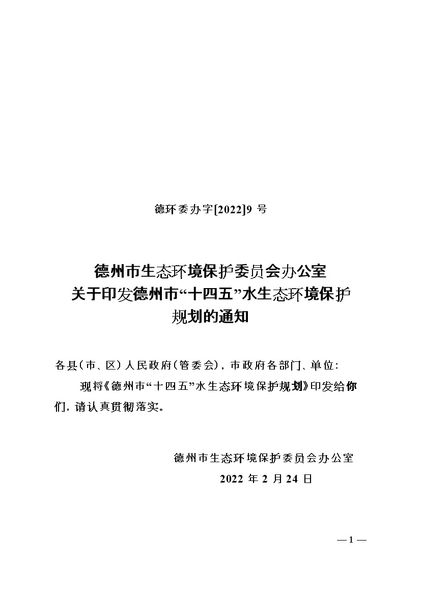 《德州市“十四五”水生態(tài)環(huán)境保護(hù)規(guī)劃》(德環(huán)委辦字【2022】9號(hào))