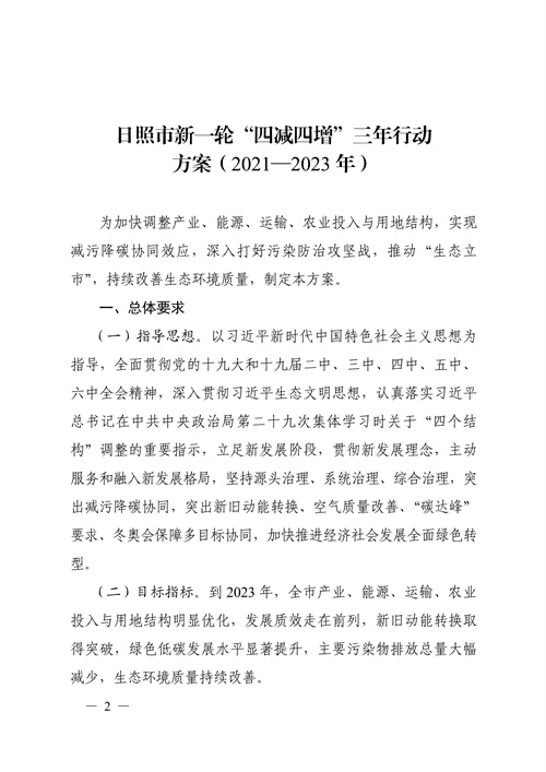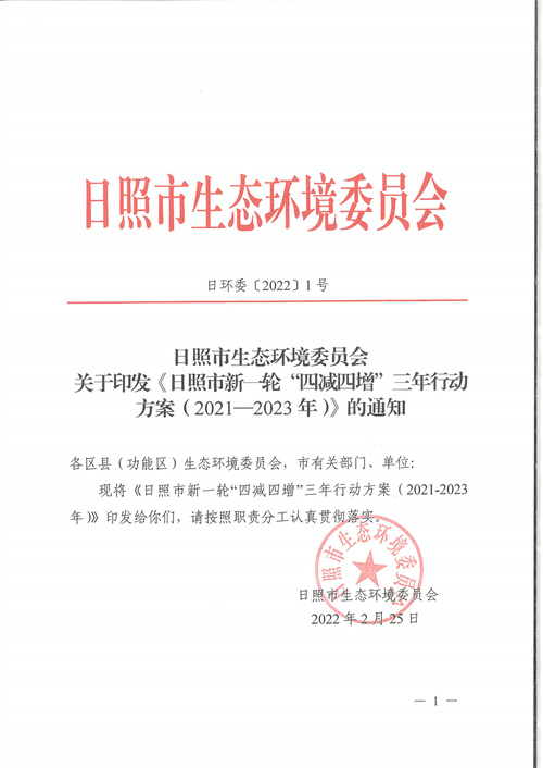 《山東日照市新一輪“四減四增”三年行動方案(2021-2023年)》(日環(huán)委【2022】1號)