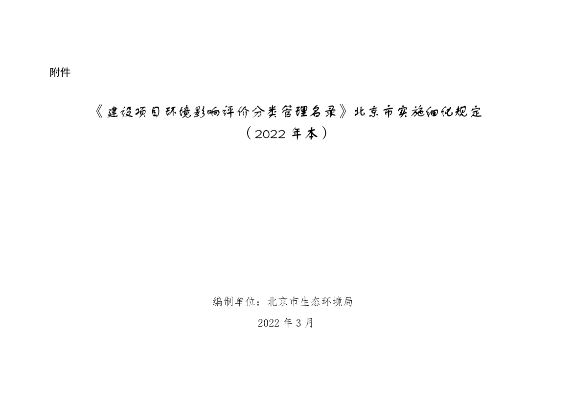 《〈建設(shè)項(xiàng)目環(huán)境影響評價(jià)分類管理名錄〉北京市實(shí)施細(xì)化規(guī)定(2022年本)》