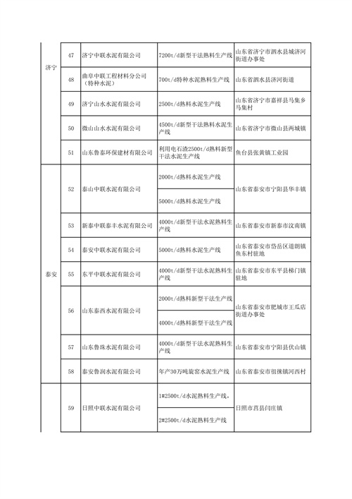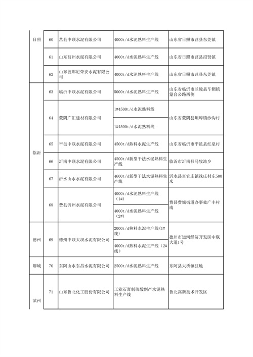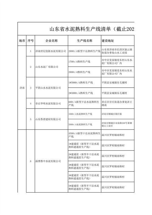 《關(guān)于山東省水泥熟料、平板玻璃生產(chǎn)線清單的公告》