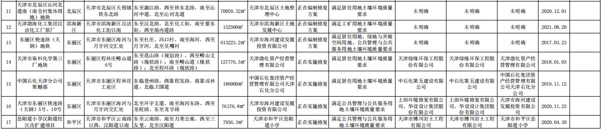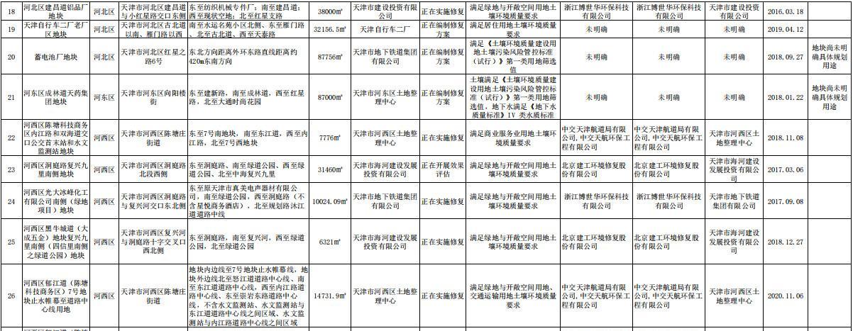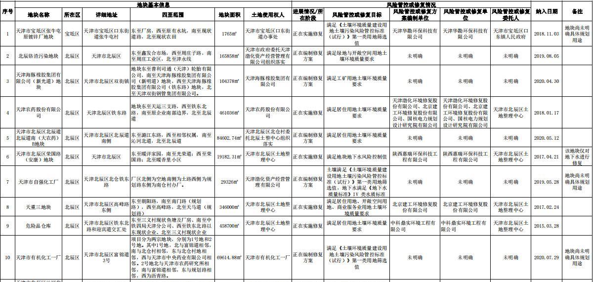 天津市建設(shè)用地土壤污染風(fēng)險(xiǎn)管控和修復(fù)名錄