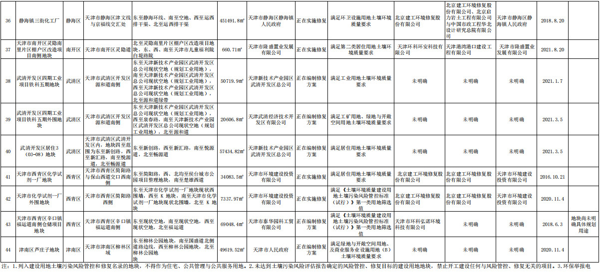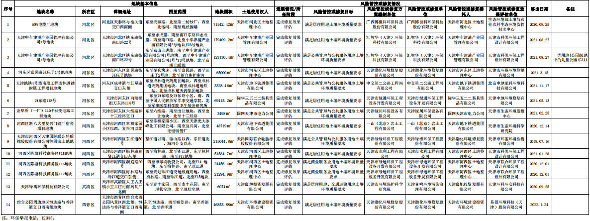 天津市建設(shè)用地土壤污染風(fēng)險(xiǎn)管控和修復(fù)名錄移出清單