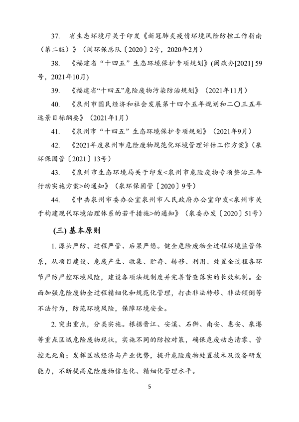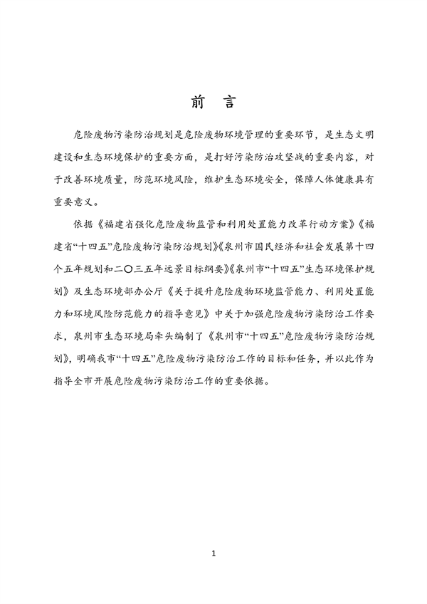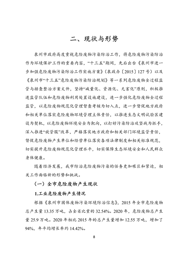 《泉州市“十四五”危險(xiǎn)廢物污染防治規(guī)劃》