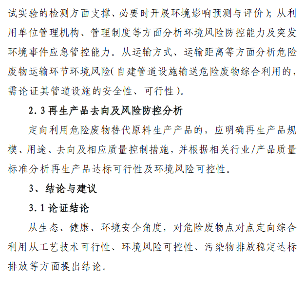 《工作方案》主要包括試點內(nèi)容、試點范圍(試點對象及試點要求)、實施程序、試點運行要求、工作保障等5部分內(nèi)容,按照“技術(shù)可行、風(fēng)險可控,全程監(jiān)管”的原則,明確了“點對點”定向利用經(jīng)營許可豁免情形及內(nèi)容,細化了“點對點”定向利用試點申請、變更、取消等相關(guān)申請審批程序,規(guī)范了試點單位危險廢物收集、運輸、利用等運行管理要求。