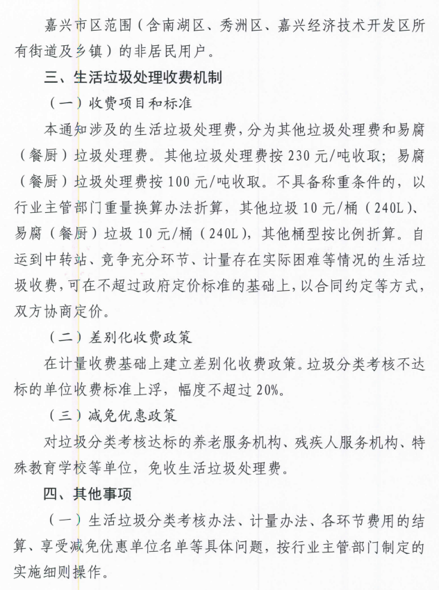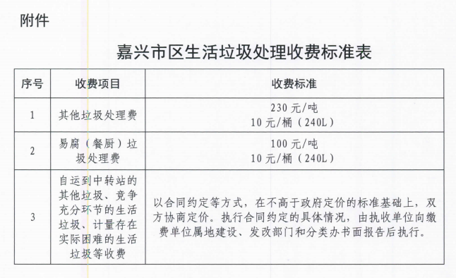 獲悉,嘉興市發(fā)改委發(fā)布關(guān)于制定嘉興市區(qū)非居民生活垃圾處理收費制度的通知,近期,行業(yè)主管部門配套制定了實施細(xì)則,于3月1日起正式實施。