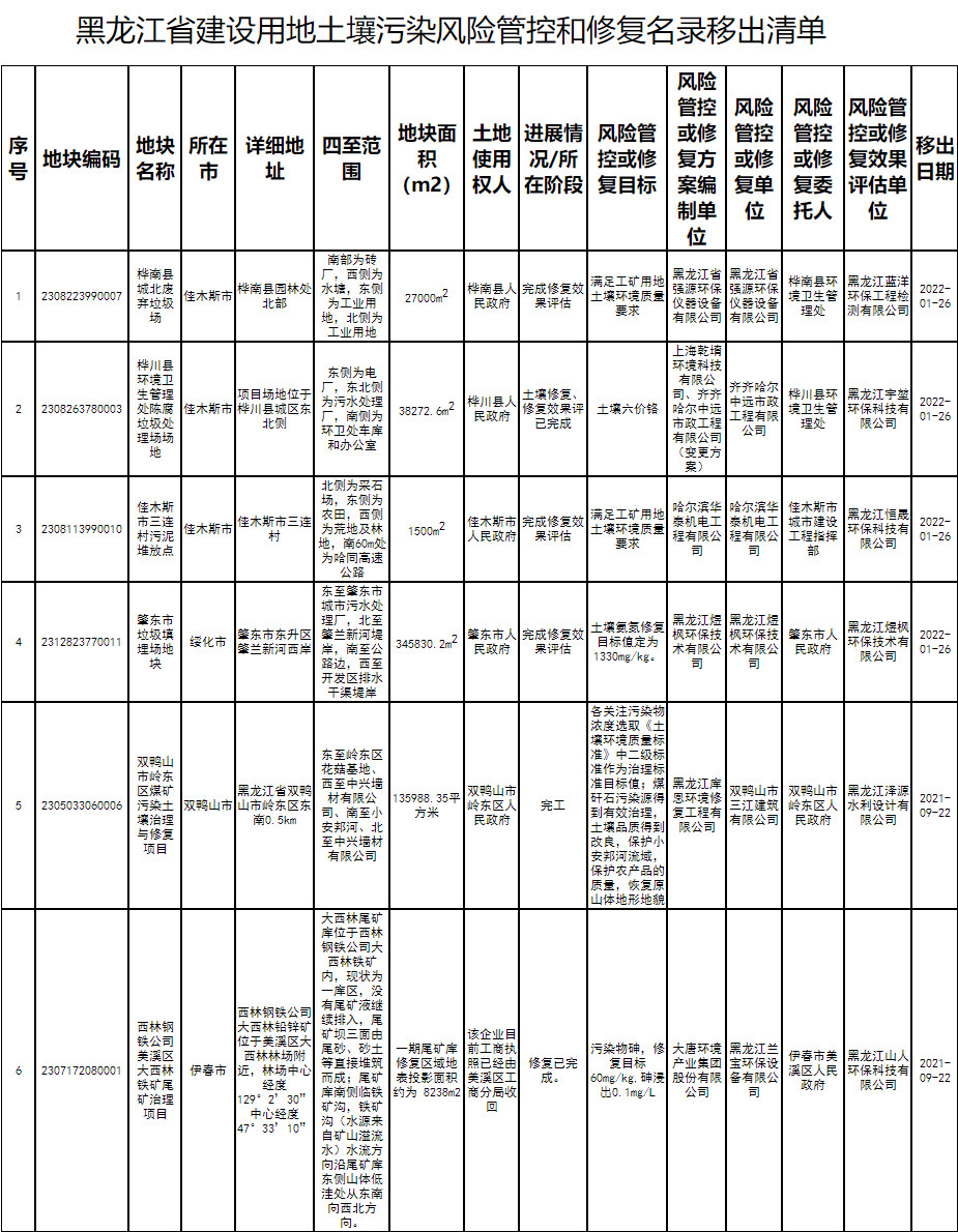 2.黑龍江省建設(shè)用地土壤污染風(fēng)險(xiǎn)管控和修復(fù)名錄移出清單