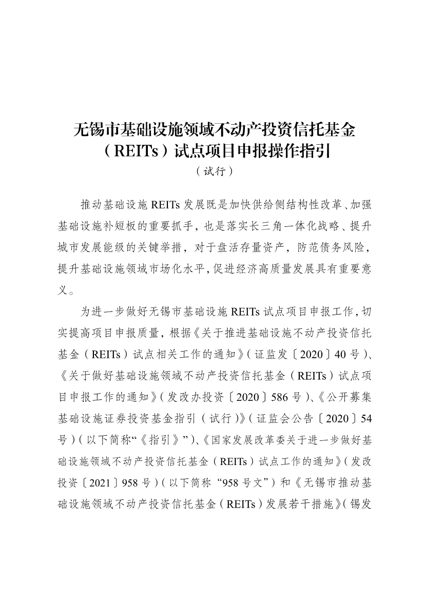 市發(fā)展改革委關于印發(fā)《無錫市基礎設施領域不動產(chǎn)投資信托基金(REITs)試點項目申報操作指引》的通知資料下載_文庫_工程資料