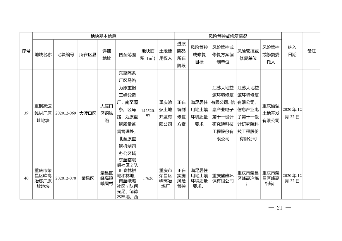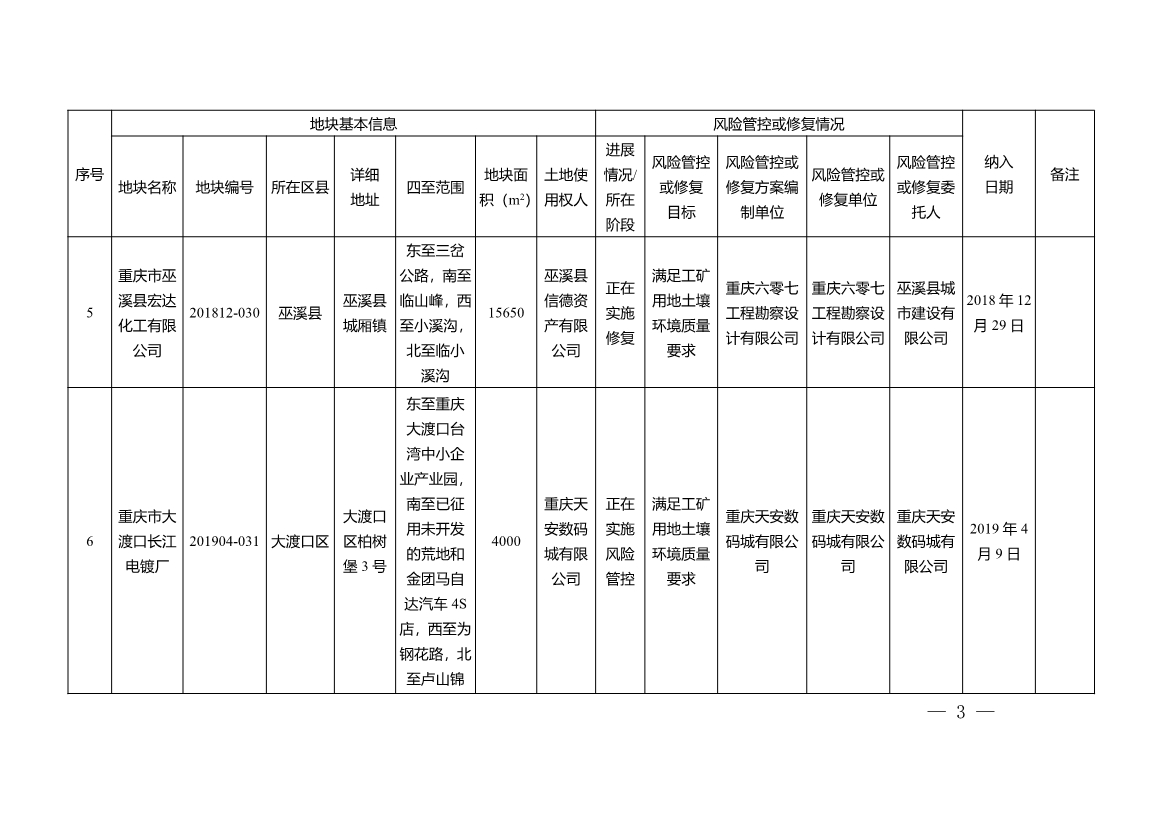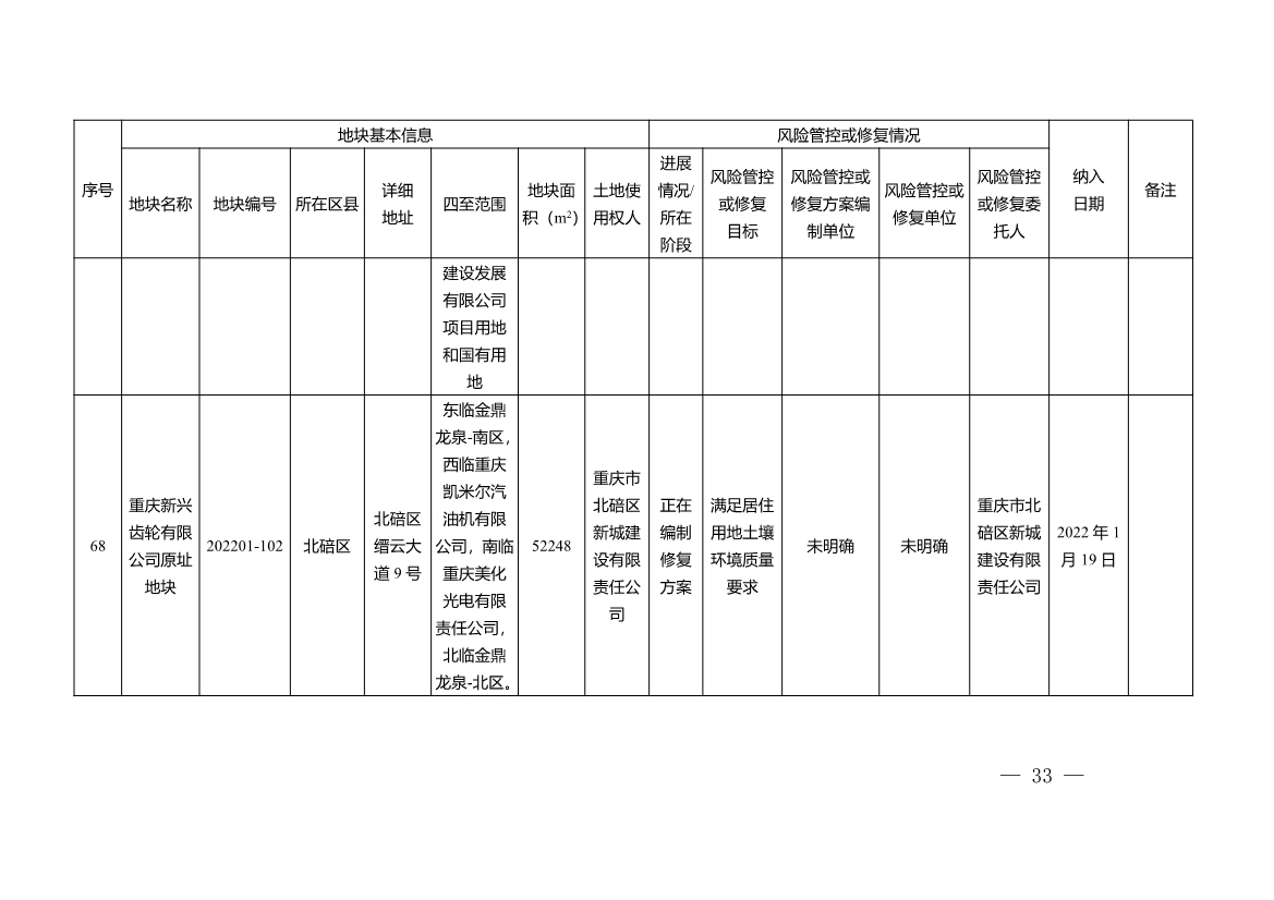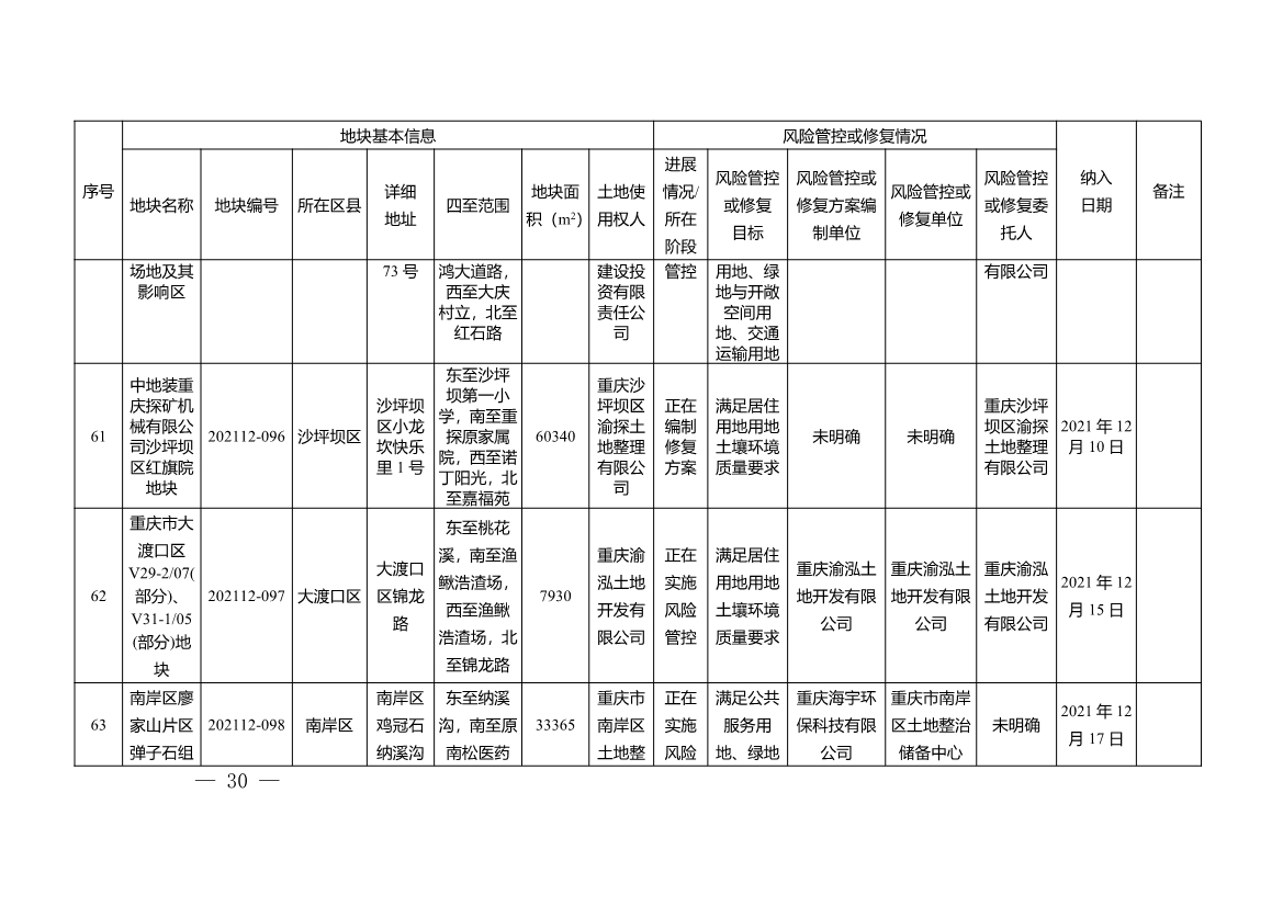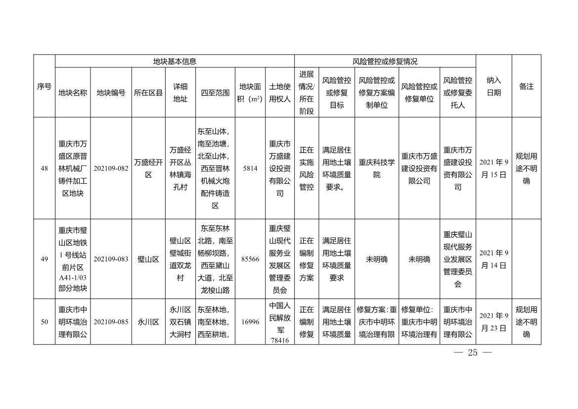 《重慶市建設(shè)用地土壤污染風險管控和修復名錄(2022年1月)》
