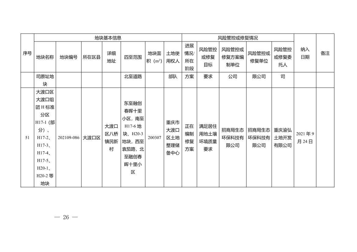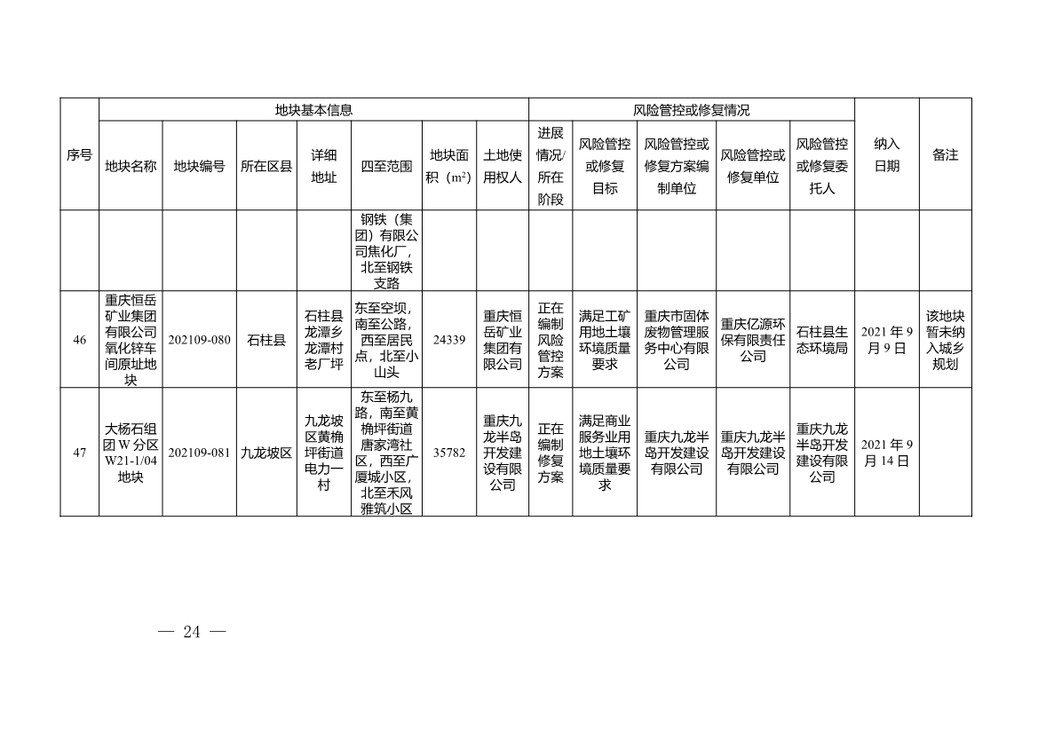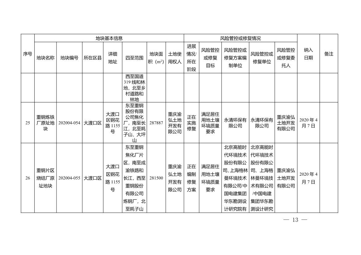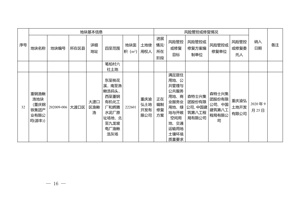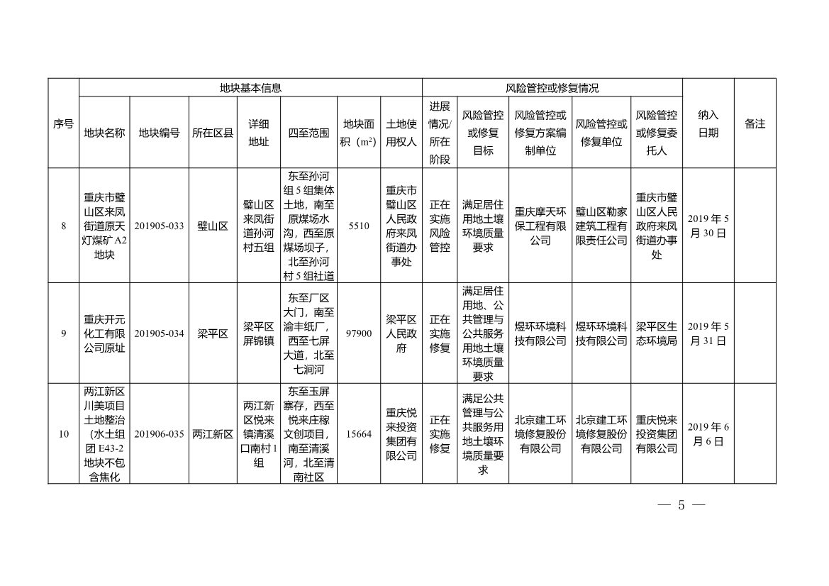《重慶市建設(shè)用地土壤污染風險管控和修復名錄(2022年1月)》