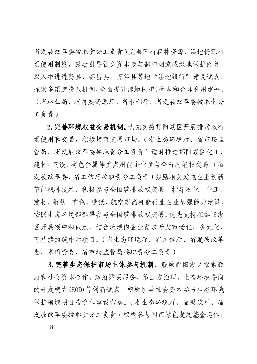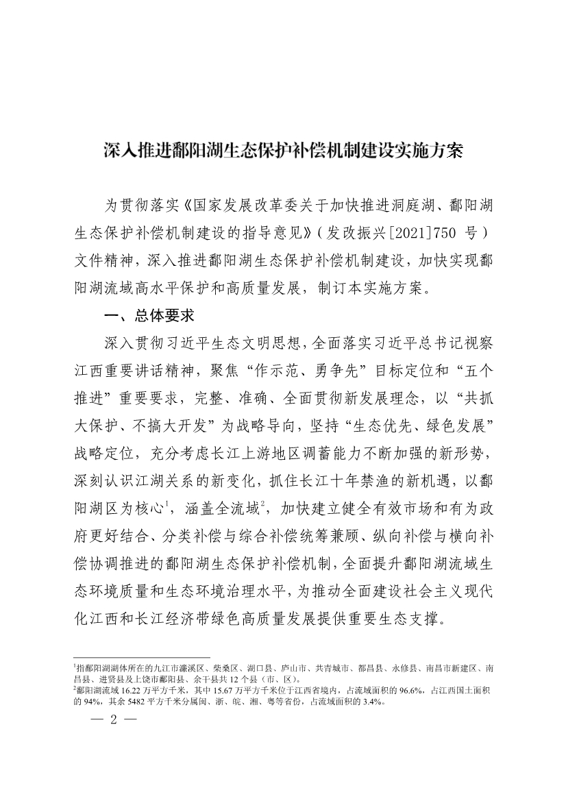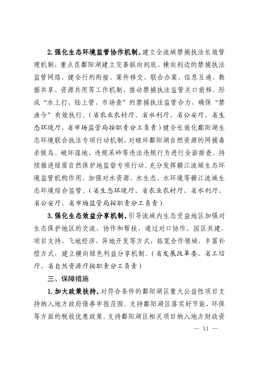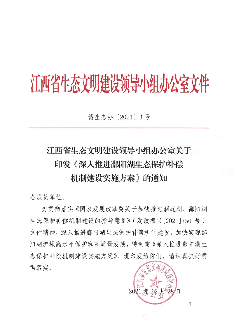 《江西省印發(fā) 深入推進(jìn)鄱陽湖生態(tài)保護(hù)補(bǔ)償機(jī)制建設(shè)實(shí)施方案》(贛生態(tài)辦【2021】3號)
