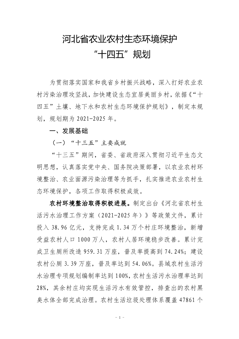 關(guān)于印發(fā)《河北省農(nóng)業(yè)農(nóng)村生態(tài)環(huán)境保護(hù) “十四五”規(guī)劃》的通知