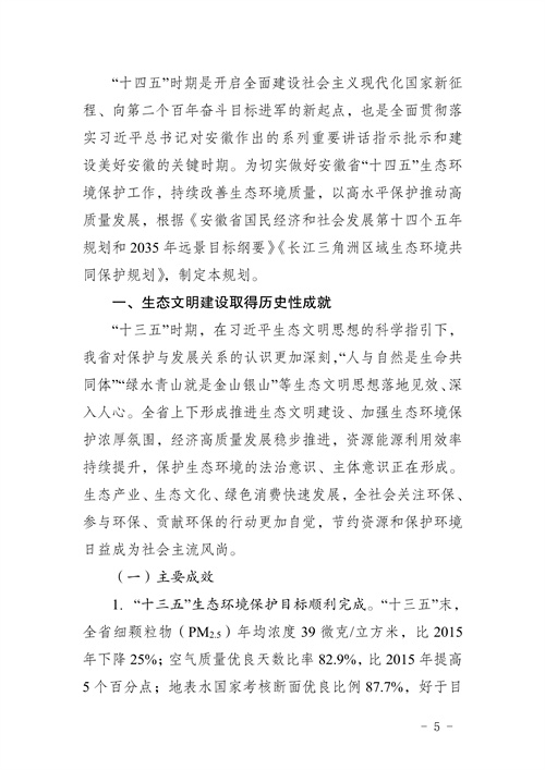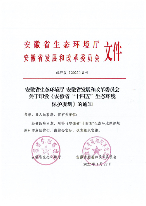 《安徽省“十四五”生態(tài)環(huán)境保護(hù)規(guī)劃》(皖環(huán)發(fā)【2022】8號(hào))