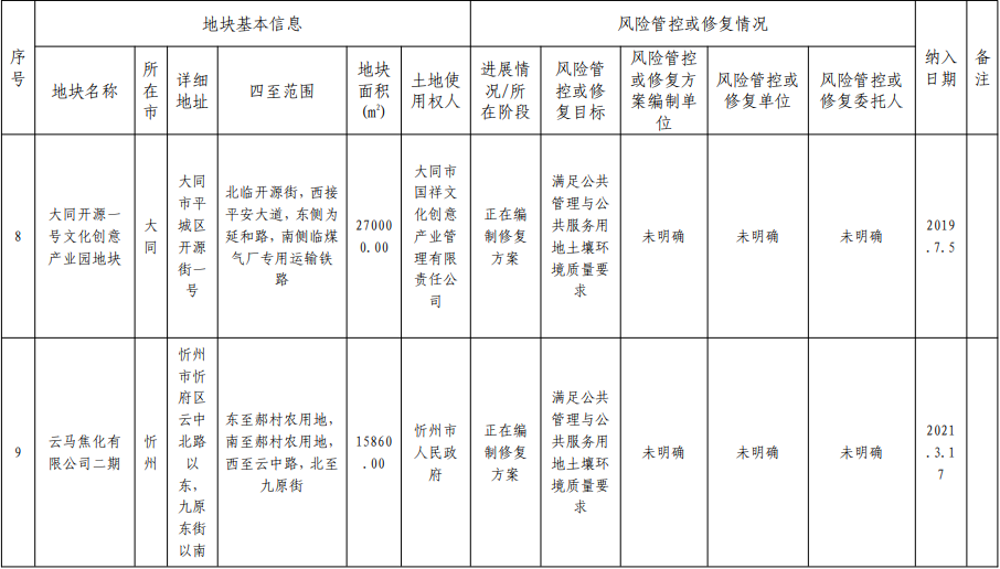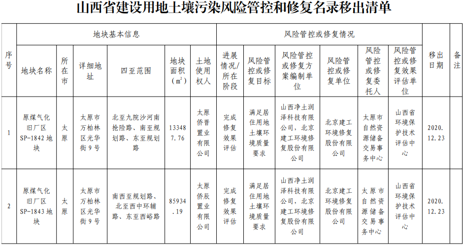 2.山西省建設(shè)用地土壤污染風(fēng)險管控和修復(fù)名錄移出清單