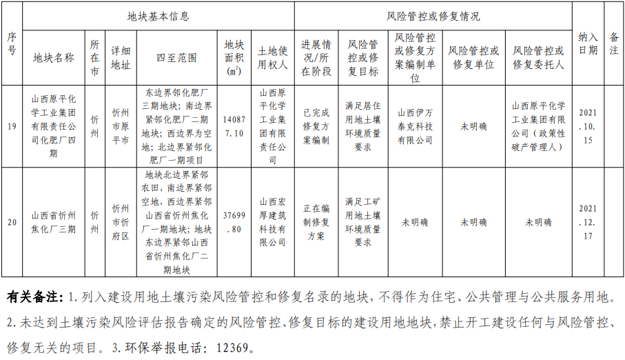 1.山西省建設(shè)用地土壤污染風(fēng)險管控和修復(fù)名錄