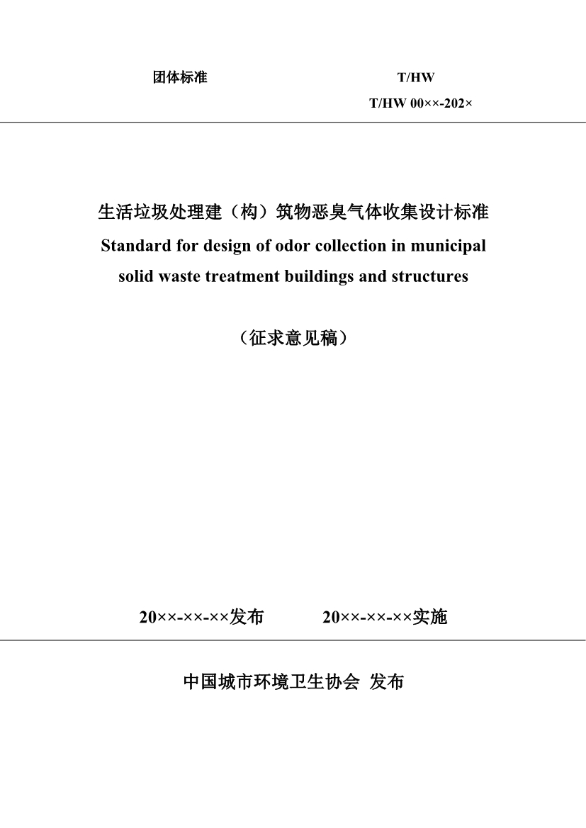 《生活垃圾處理建(構(gòu))筑物惡臭氣體收集設(shè)計標(biāo)準(zhǔn)》(征求意見稿)