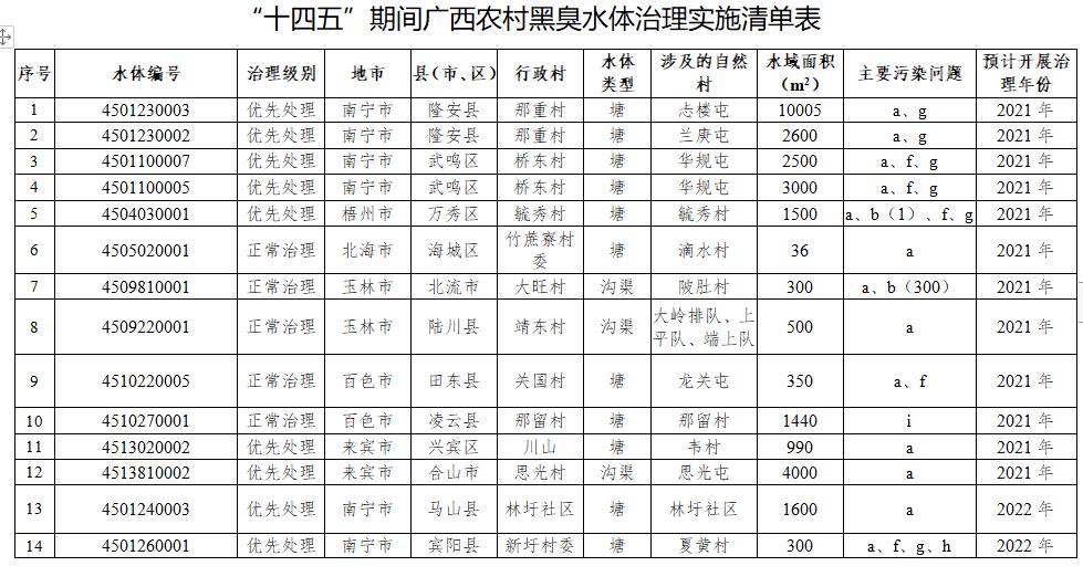 《“十四五”廣西農(nóng)村黑臭水體治理實施方案》