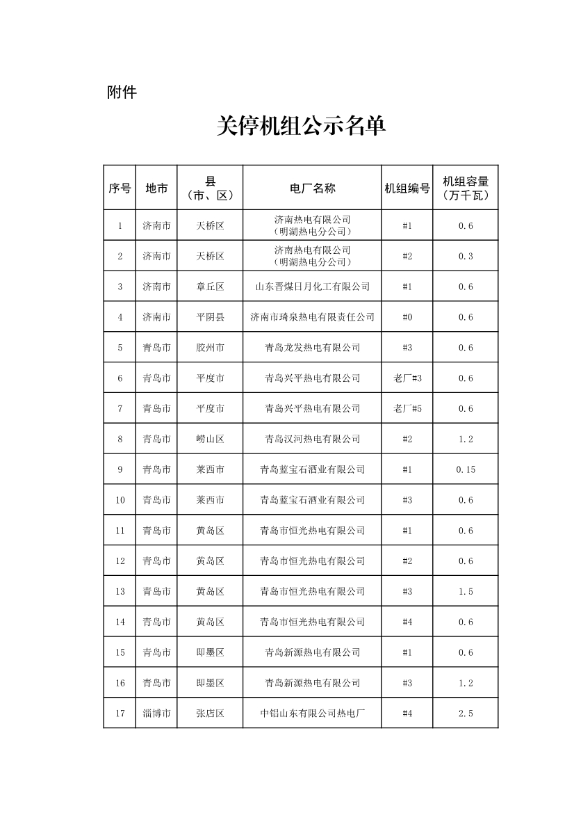 關(guān)于山東省2021年下半年淘汰關(guān)停燃煤機組的公示