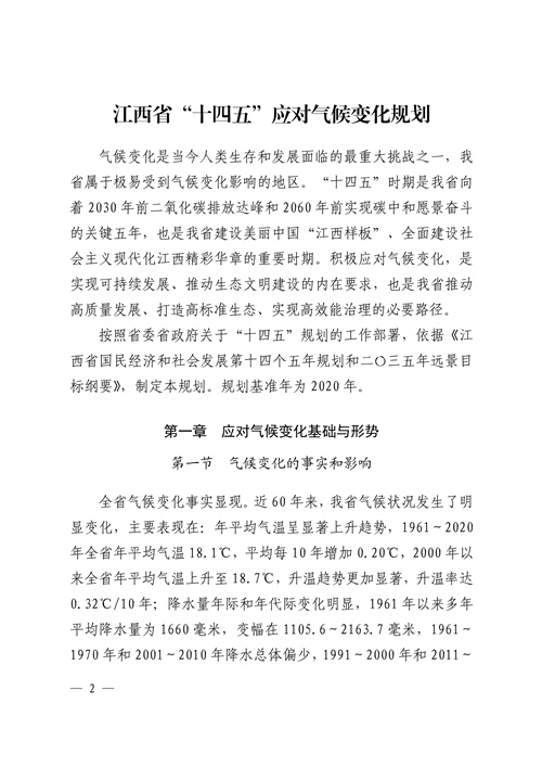 《江西省“十四五”應(yīng)對(duì)氣候變化規(guī)劃》(贛環(huán)氣候【2021】23號(hào))