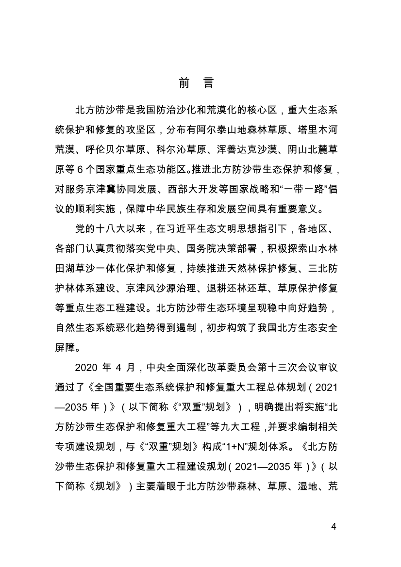 《北方防沙帶生態(tài)保護(hù)和修復(fù)重大工程建設(shè)規(guī)劃(2021—2035年)》(林規(guī)發(fā)〔2021〕122號)