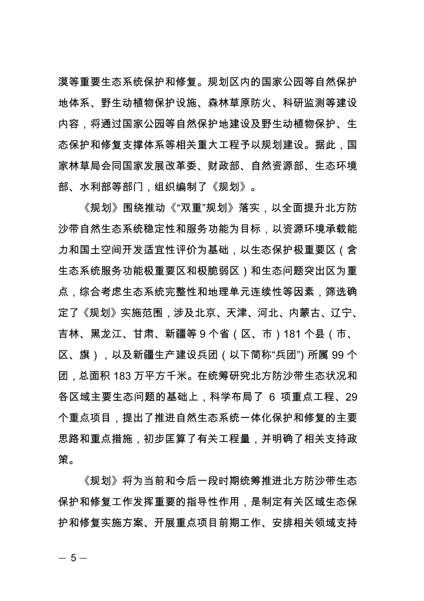 國家林業(yè)和草原局 國家發(fā)展改革委 自然資源部 水利部關(guān)于印發(fā)《北方防沙帶生態(tài)保護(hù)和修復(fù)重大工程建設(shè)規(guī)劃(2021—2035年)》的通知