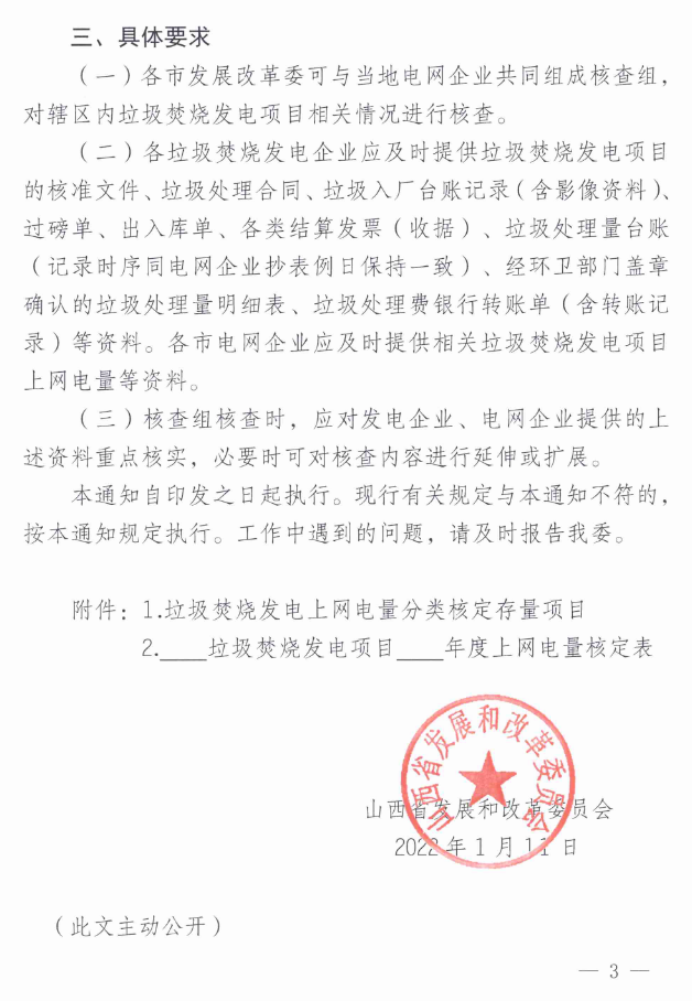 山西:關(guān)于完善垃圾焚燒發(fā)電項目上網(wǎng)電量分類核定工作機(jī)制有關(guān)事項的通知