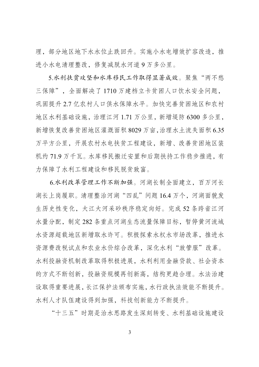 《規(guī)劃》指出,“十四五”期間要抓好8個(gè)方面重點(diǎn)任務(wù)。一是實(shí)施國(guó)家節(jié)水行動(dòng),強(qiáng)化水資源剛性約束。按照“嚴(yán)管控、抓重點(diǎn)、建機(jī)制”的思路,實(shí)施國(guó)家節(jié)水行動(dòng)方案,推動(dòng)水資源利用方式進(jìn)一步向節(jié)約集約轉(zhuǎn)變,加快形成節(jié)水型生產(chǎn)、生活方式和消費(fèi)模式。二是加強(qiáng)重大水資源工程建設(shè),提高水資源優(yōu)化配置能力。按照“強(qiáng)骨干、增調(diào)配、成網(wǎng)絡(luò)”的思路,立足流域整體和水資源空間配置,抓緊推進(jìn)一批跨流域跨區(qū)域水資源配置工程建設(shè),強(qiáng)化大中小微供水工程協(xié)調(diào)配套,加快形成以重大引調(diào)水工程和骨干輸配水通道為綱、以區(qū)域河湖水系連通和供水灌溉工程為目、以重點(diǎn)水源工程為結(jié)的水資源配置體系。三是加強(qiáng)防洪薄弱環(huán)節(jié)建設(shè),提高流域防洪減災(zāi)能力。按照“消隱患、提標(biāo)準(zhǔn)、控風(fēng)險(xiǎn)”的思路,加快病險(xiǎn)水庫(kù)除險(xiǎn)加固,推進(jìn)堤防、控制性樞紐和蓄滯洪區(qū)等工程建設(shè),提升防洪工程標(biāo)準(zhǔn),完善流域防洪減災(zāi)體系。四是加強(qiáng)水土保持和河湖整治,提高水生態(tài)環(huán)境保護(hù)治理能力。按照“嚴(yán)保護(hù)、重治理、提質(zhì)量”的思路,發(fā)揮河湖長(zhǎng)制作用,加強(qiáng)水源涵養(yǎng)區(qū)保護(hù)修復(fù),加大重點(diǎn)河湖保護(hù)和綜合治理力度,科學(xué)推進(jìn)水土流失綜合治理,繼續(xù)推進(jìn)地下水超采治理,恢復(fù)水清岸綠的水生態(tài)體系,擴(kuò)大優(yōu)質(zhì)生態(tài)產(chǎn)品供給。五是加強(qiáng)農(nóng)業(yè)農(nóng)村水利建設(shè),提高鄉(xiāng)村振興水利保障能力。按照“保底線(xiàn)、提效能、促振興”的思路,加大農(nóng)業(yè)農(nóng)村水利基礎(chǔ)設(shè)施建設(shè)力度,重點(diǎn)向國(guó)家鄉(xiāng)村振興重點(diǎn)幫扶縣、革命老區(qū)、民族地區(qū)等特殊類(lèi)型地區(qū)傾斜,實(shí)現(xiàn)鞏固拓展脫貧攻堅(jiān)成果同鄉(xiāng)村振興有效銜接,提高鄉(xiāng)村振興水利保障水平。六是加強(qiáng)智慧水利建設(shè),提升數(shù)字化網(wǎng)絡(luò)化智能化水平。按照“強(qiáng)感知、增智慧、促應(yīng)用”的思路,加強(qiáng)水安全感知能力建設(shè),暢通水利信息網(wǎng),強(qiáng)化水利網(wǎng)絡(luò)安全保障,推進(jìn)水利工程智能化改造,加快水利數(shù)字化轉(zhuǎn)型,構(gòu)建數(shù)字化、網(wǎng)絡(luò)化、智能化的智慧水利體系。七是加強(qiáng)水利重點(diǎn)領(lǐng)域改革,提高水利創(chuàng)新發(fā)展能力。按照“重創(chuàng)新、破障礙、激活力”的思路,發(fā)揮政府與市場(chǎng)的協(xié)同作用,推動(dòng)水利重點(diǎn)領(lǐng)域和關(guān)鍵環(huán)節(jié)改革,破除水利改革發(fā)展瓶頸。八是加強(qiáng)水利管理,提高水治理現(xiàn)代化水平。堅(jiān)持依法治水、科學(xué)管水,全面加強(qiáng)水利法規(guī)制度建設(shè),強(qiáng)化涉水事務(wù)監(jiān)管,推進(jìn)科技人才創(chuàng)新和水文化建設(shè),不斷提升水治理能力現(xiàn)代化水平。資料庫(kù)_資料下載_報(bào)告模板
