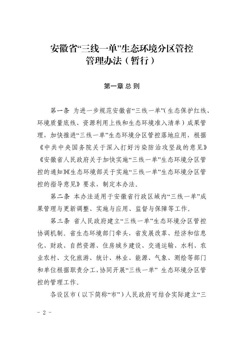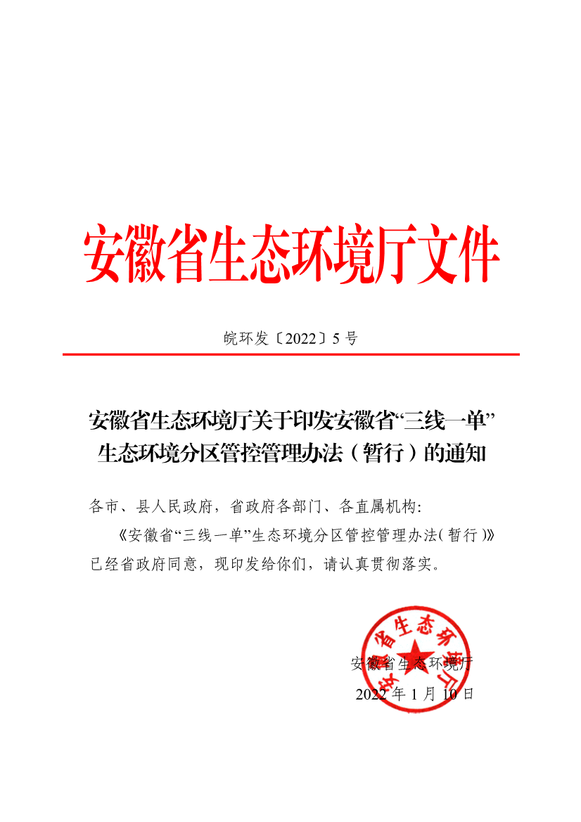 《安徽省“三線一單”生態(tài)環(huán)境分區(qū)管控管理辦法(暫行)》(皖環(huán)發(fā)【2022】5號(hào))