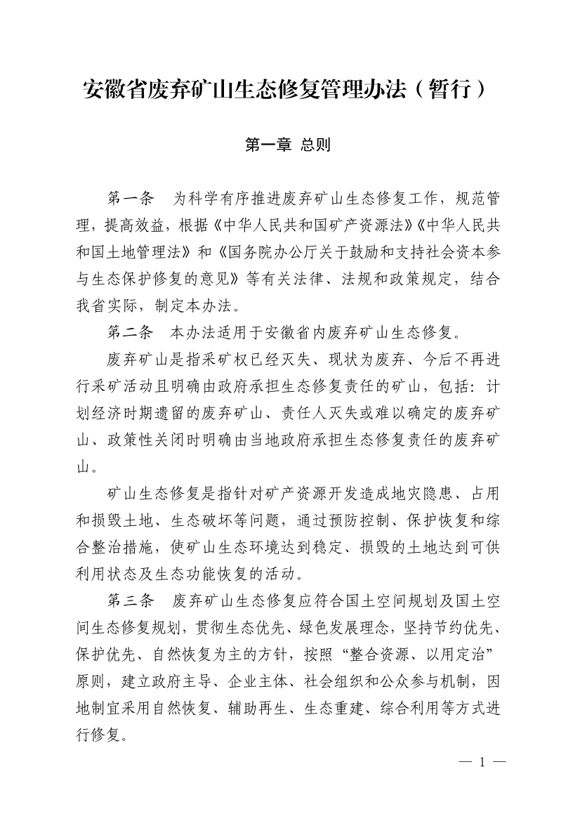 《安徽省廢棄礦山生態(tài)修復(fù)管理辦法(暫行)》