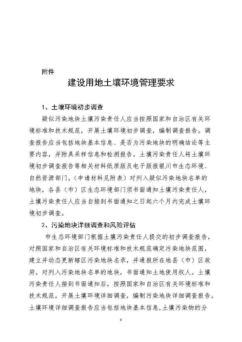 為加強(qiáng)建設(shè)用地環(huán)境保護(hù)監(jiān)督管理,防控污染地塊環(huán)境風(fēng)險,保障建設(shè)用地土壤環(huán)境安全,規(guī)范建設(shè)用地土壤污染狀況調(diào)查評估和治理修復(fù)及風(fēng)險管控等活動,市生態(tài)環(huán)境局、工信局、自然資源局、住建局、審批服務(wù)管理局、土儲局結(jié)合新出臺的土壤生態(tài)環(huán)境污染防治相關(guān)政策法規(guī),聯(lián)合制定了《銀川市建設(shè)用地土壤生態(tài)環(huán)境管理聯(lián)動方案》,現(xiàn)印發(fā)你們,請結(jié)合實(shí)際認(rèn)真抓好貫徹落實(shí)。
