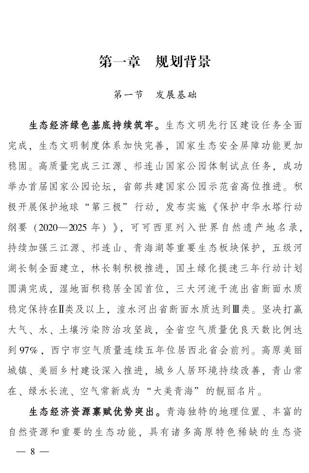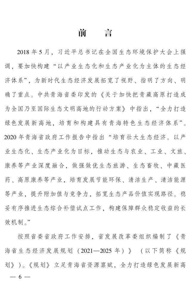 《青海省生態(tài)經(jīng)濟發(fā)展規(guī)劃(2021—2025年)》(青政辦 〔2021〕 122 號)