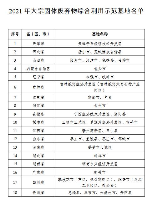 附件:1.2021年大宗固體廢棄物綜合利用示范基地名單