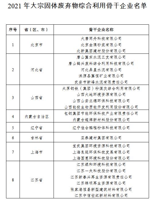 2.2021年大宗固體廢棄物綜合利用骨干企業(yè)名單