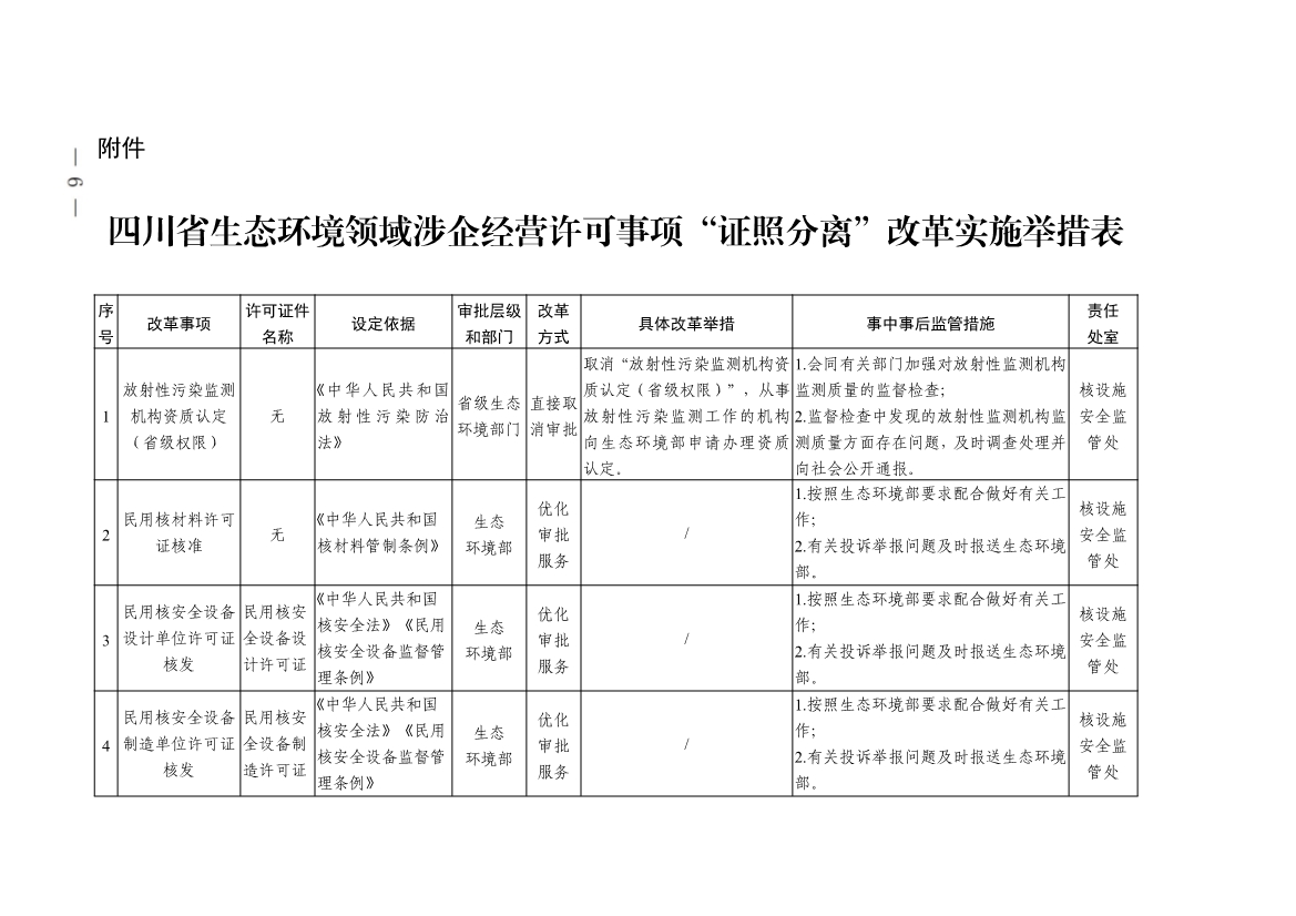 《四川省生態(tài)環(huán)境領(lǐng)域深化“證照分離”改革進一步激發(fā)市場主體發(fā)展活力實施方案》
