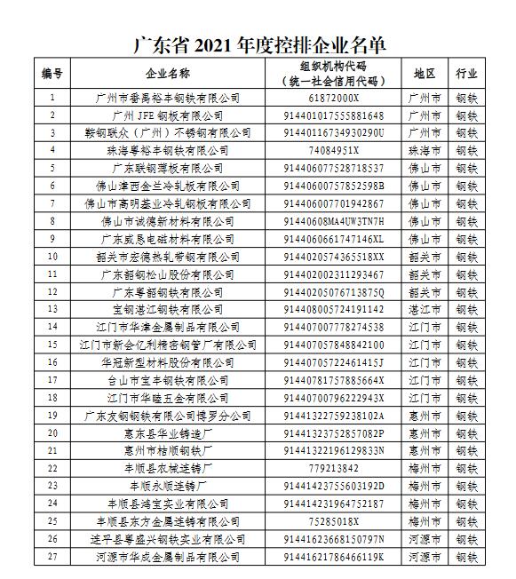 《廣東省2021年度碳排放配額分配實施方案(附企業(yè)名單)》(粵環(huán)〔2021〕12號)