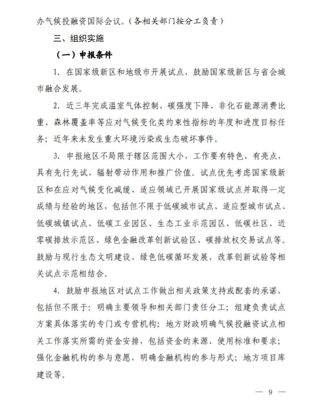 關(guān)于開(kāi)展氣候投融資試點(diǎn)工作的通知