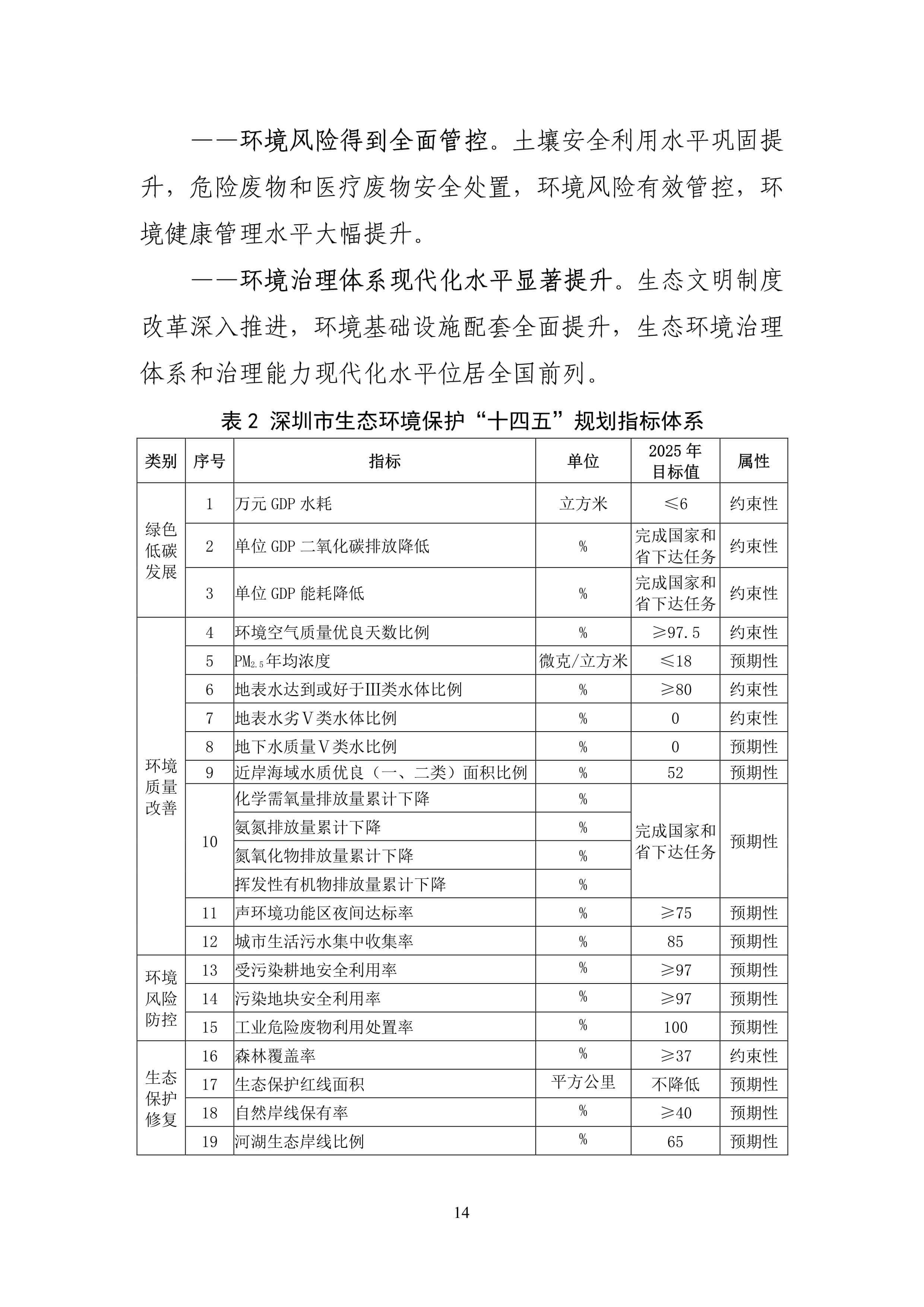 《深圳市生態(tài)環(huán)境保護(hù)“十四五”規(guī)劃》