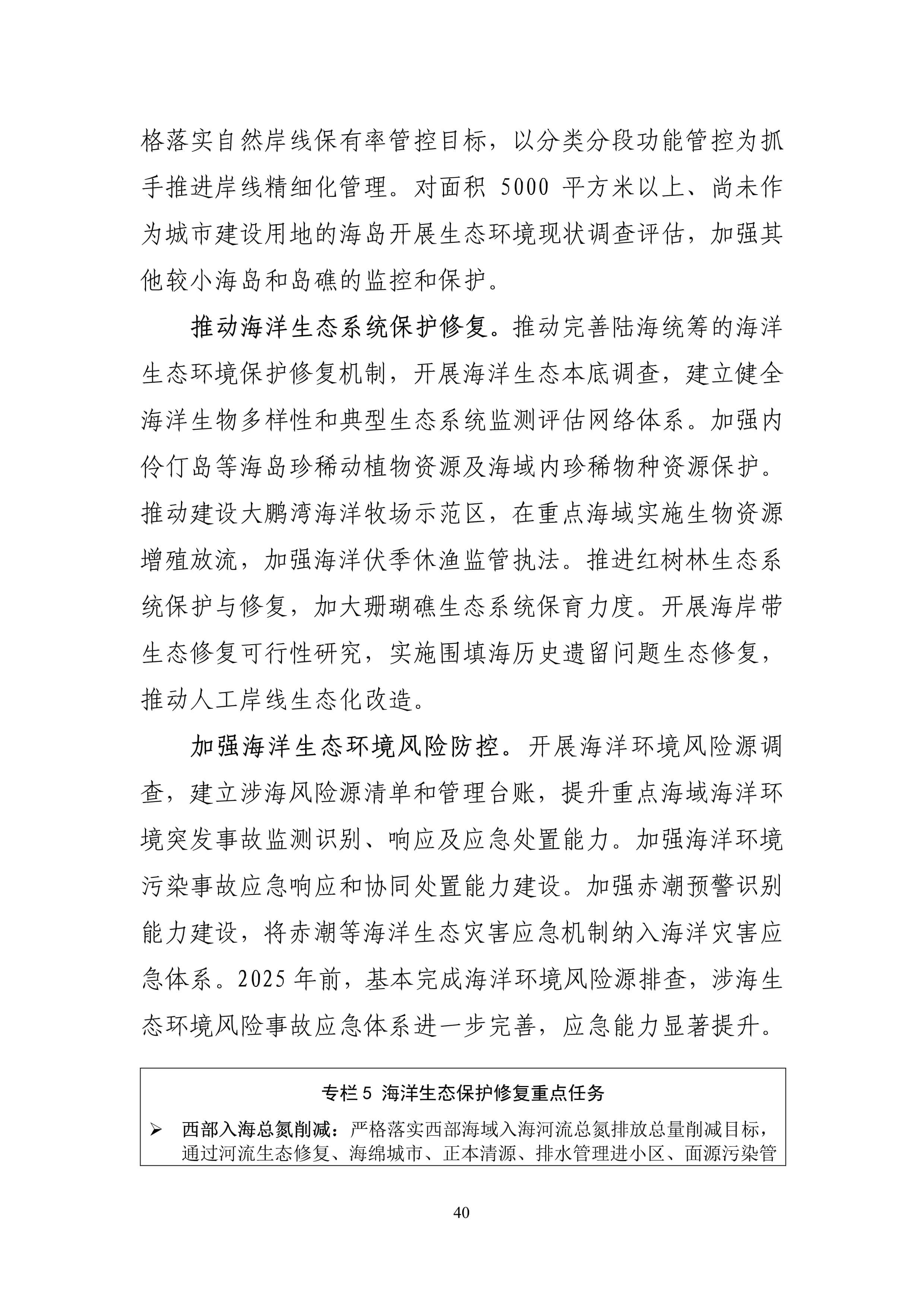 規(guī)劃包括加快綠色發(fā)展轉(zhuǎn)型,全面推動(dòng)高質(zhì)量發(fā)展、積極應(yīng)對(duì)氣候變化,控制溫室氣體排放、加強(qiáng)協(xié)同控制,引領(lǐng)大氣環(huán)境質(zhì)量改善、強(qiáng)化系統(tǒng)治理修復(fù),持續(xù)提升水環(huán)境質(zhì)量、推進(jìn)陸海統(tǒng)籌治理,加快建設(shè)美麗海灣、深化土壤污染防治,加強(qiáng)農(nóng)村環(huán)境治理、強(qiáng)化生態(tài)保護(hù)監(jiān)管,筑牢生態(tài)安全格局、強(qiáng)化全過程管控,有效防范環(huán)境風(fēng)險(xiǎn)等方面內(nèi)容。