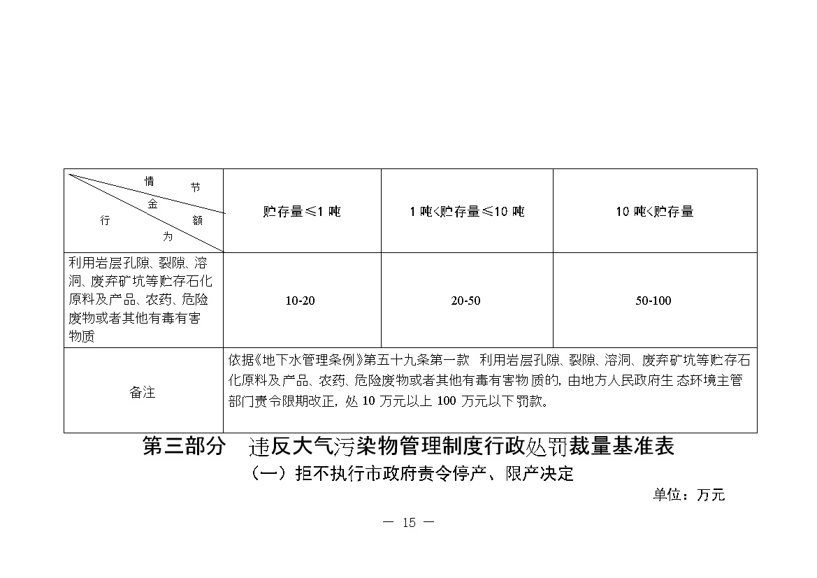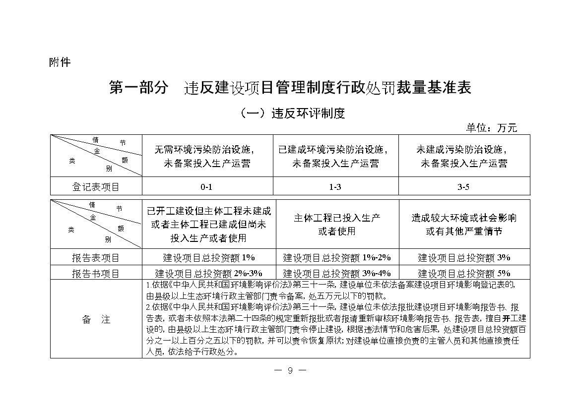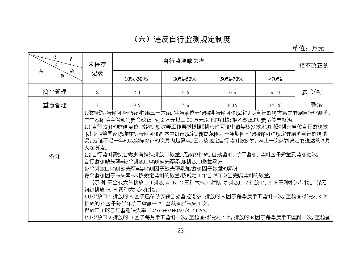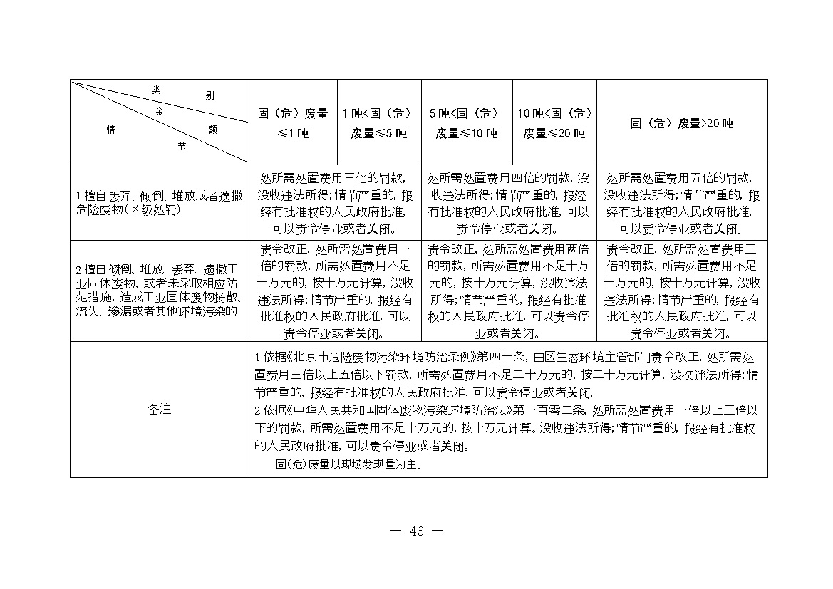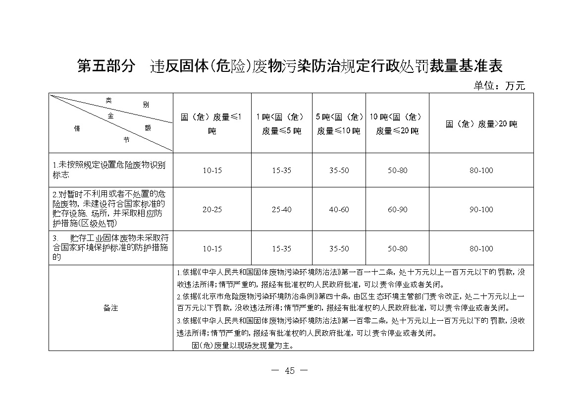 2.本基準列舉了對本市常見環(huán)境違法行為的處罰裁量權(quán),未列入基準的環(huán)境違法行為,參照已經(jīng)規(guī)范的裁量權(quán)的方法,通過橫向比較進行裁量。