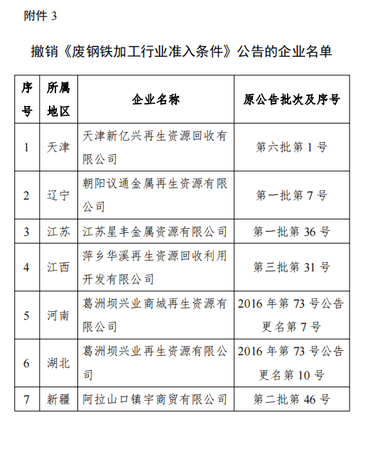 附件3.撤銷《廢鋼鐵加工行業(yè)準入條件》公告的企業(yè)名單