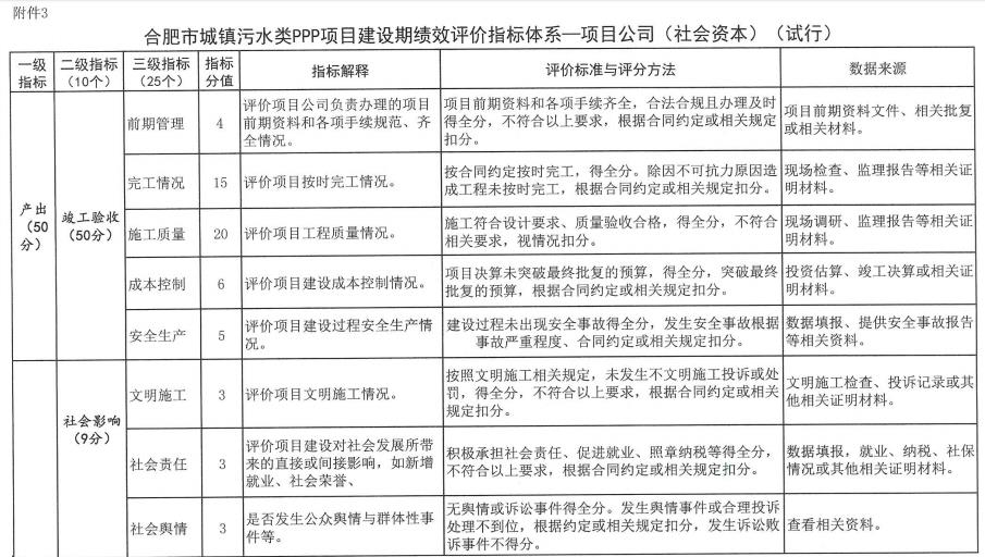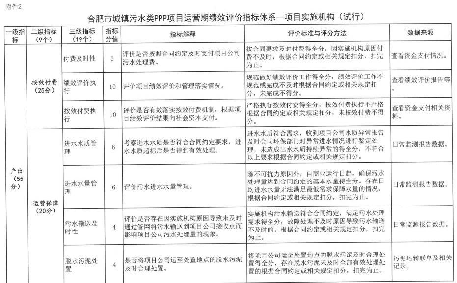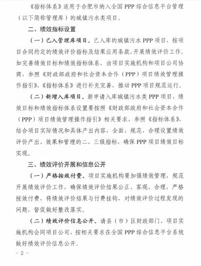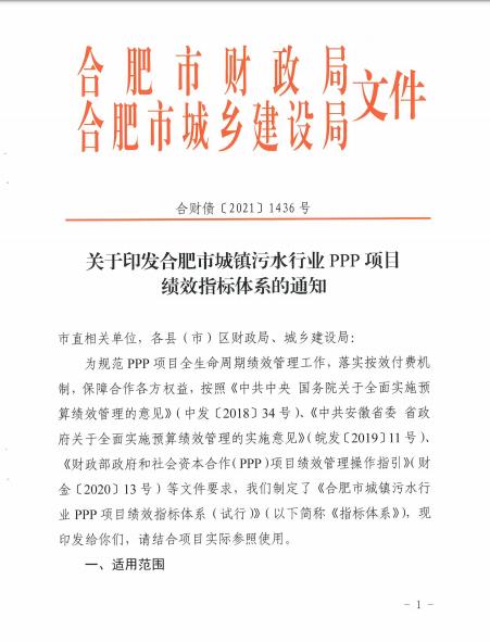 《合肥市城鎮(zhèn)污水行業(yè)PPP項目績效指標體系》(合財債【2021】1436號)