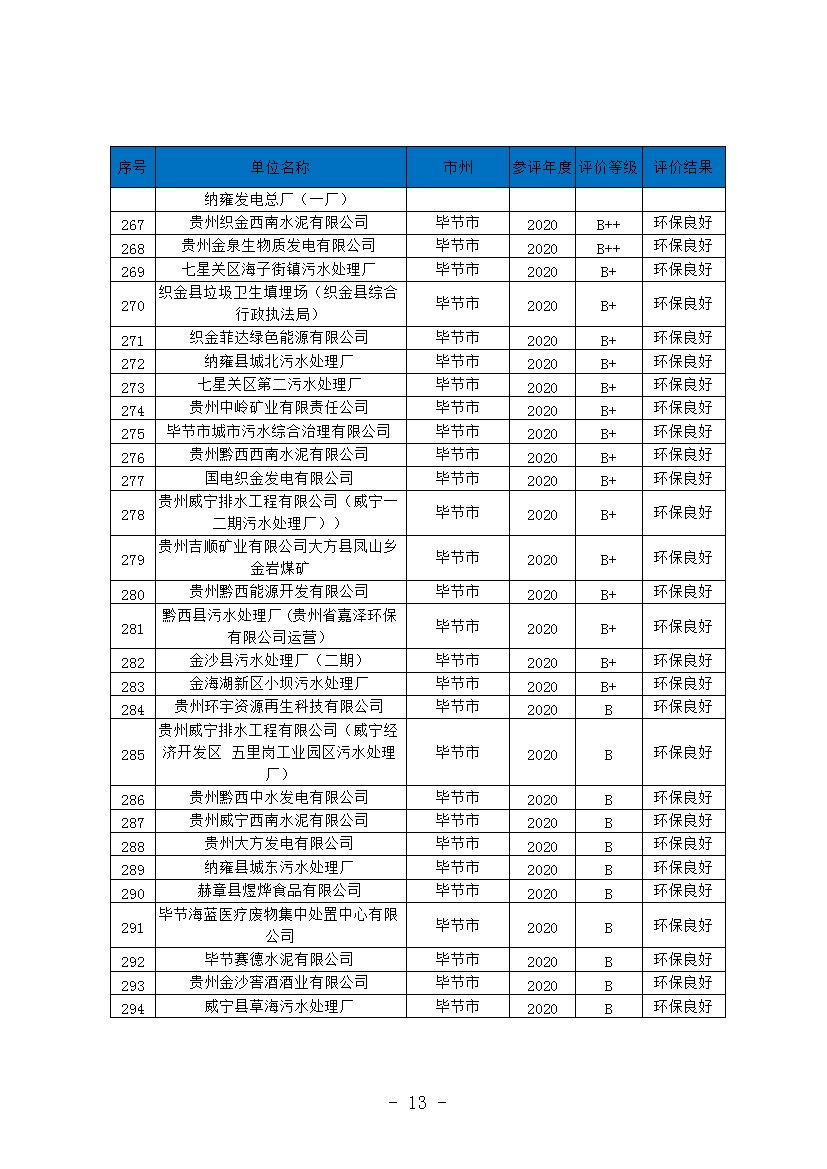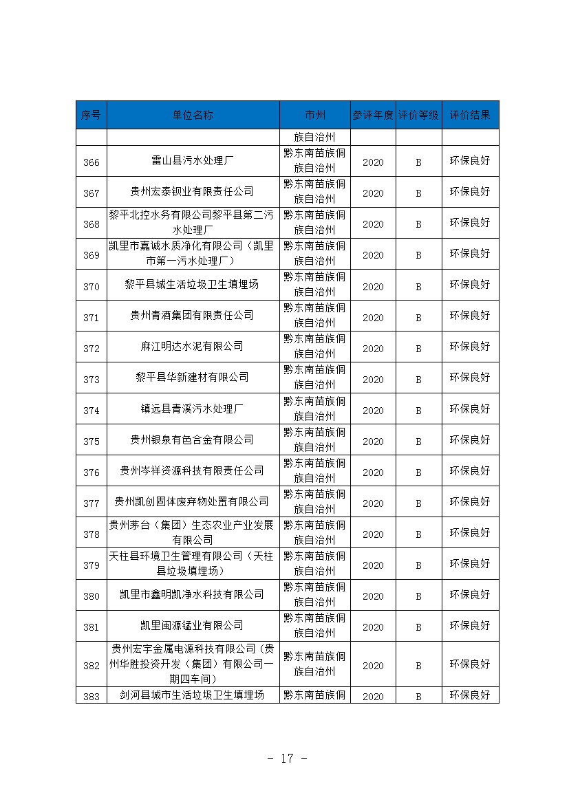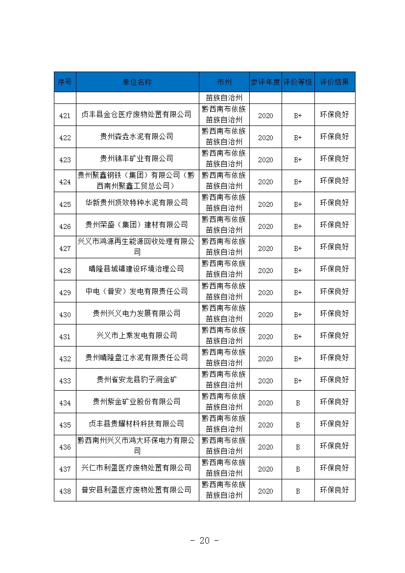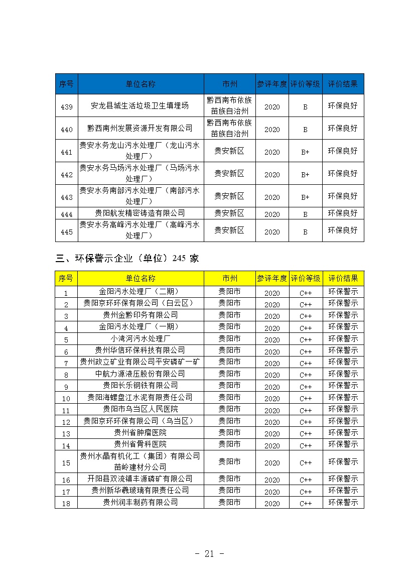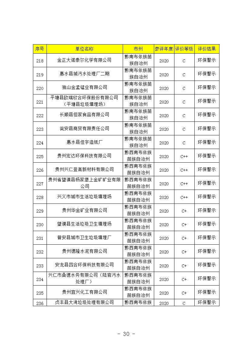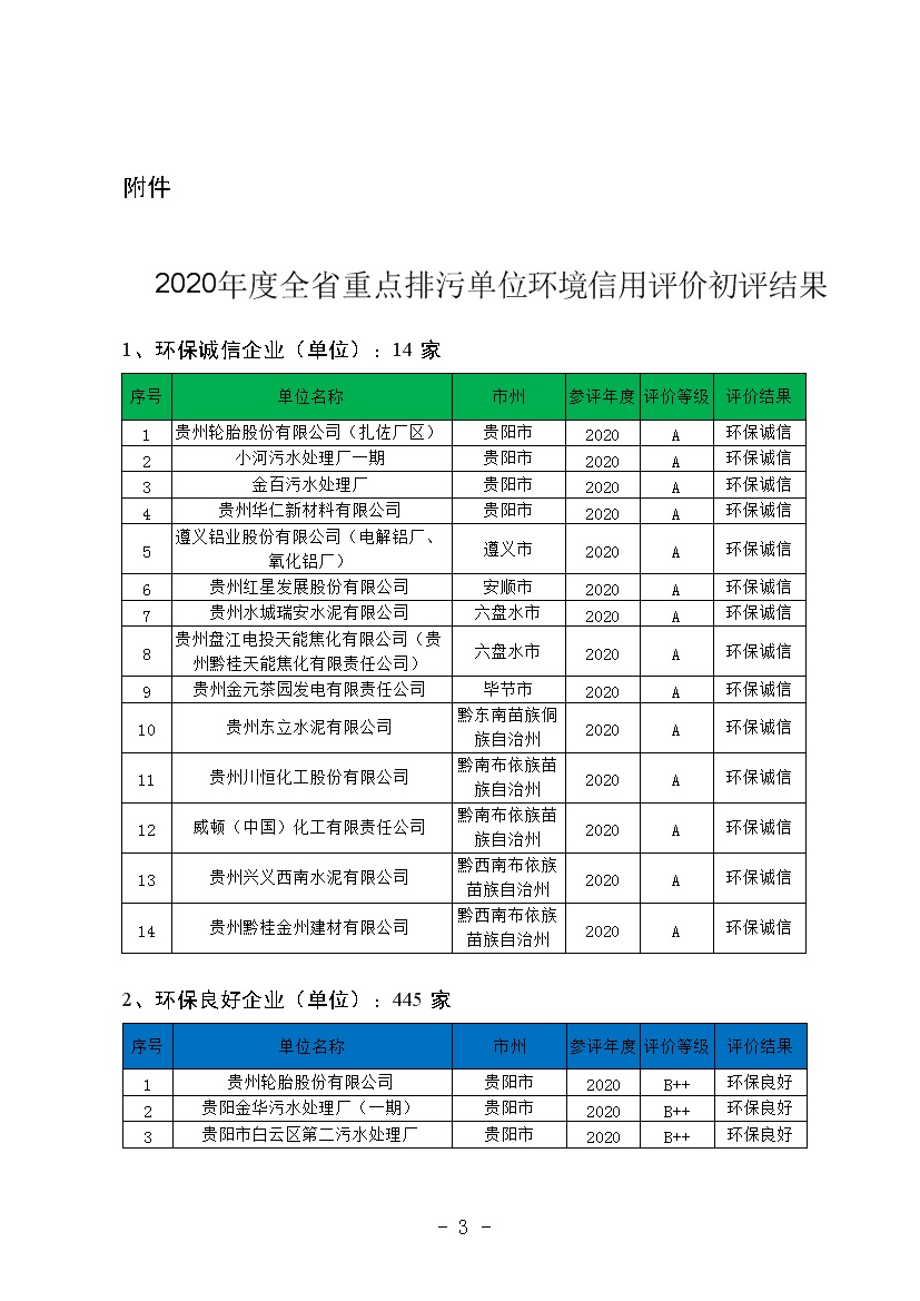 《貴州省2020年度全省重點排污單位環(huán)境信用評價初評結果》