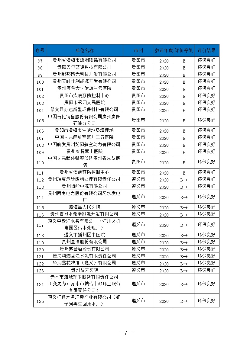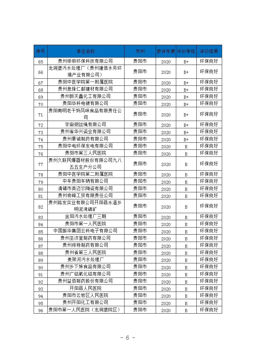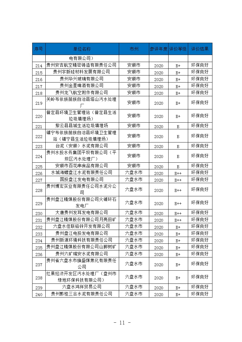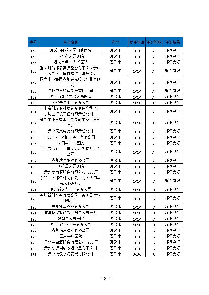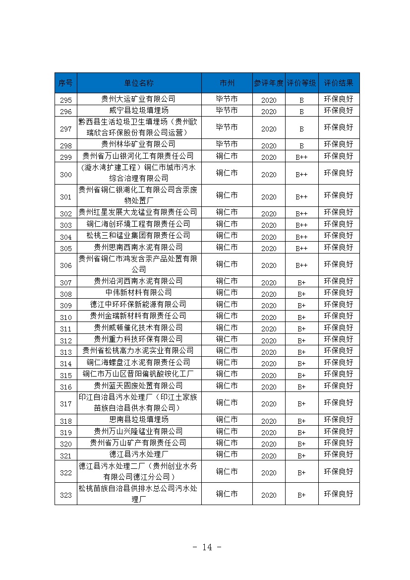 《貴州省2020年度全省重點排污單位環(huán)境信用評價初評結果》