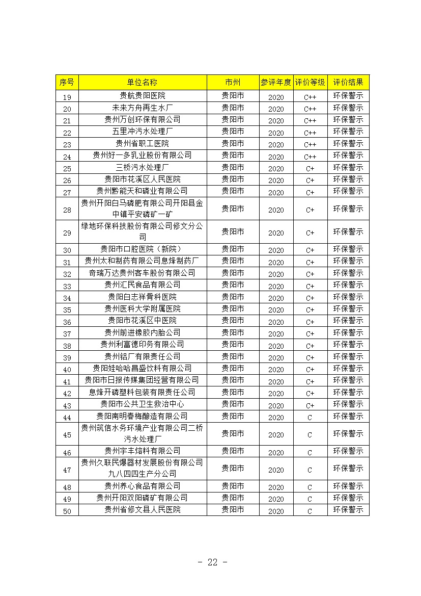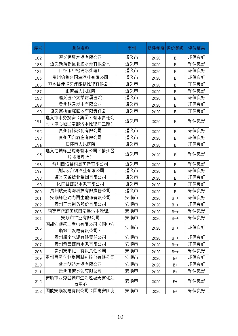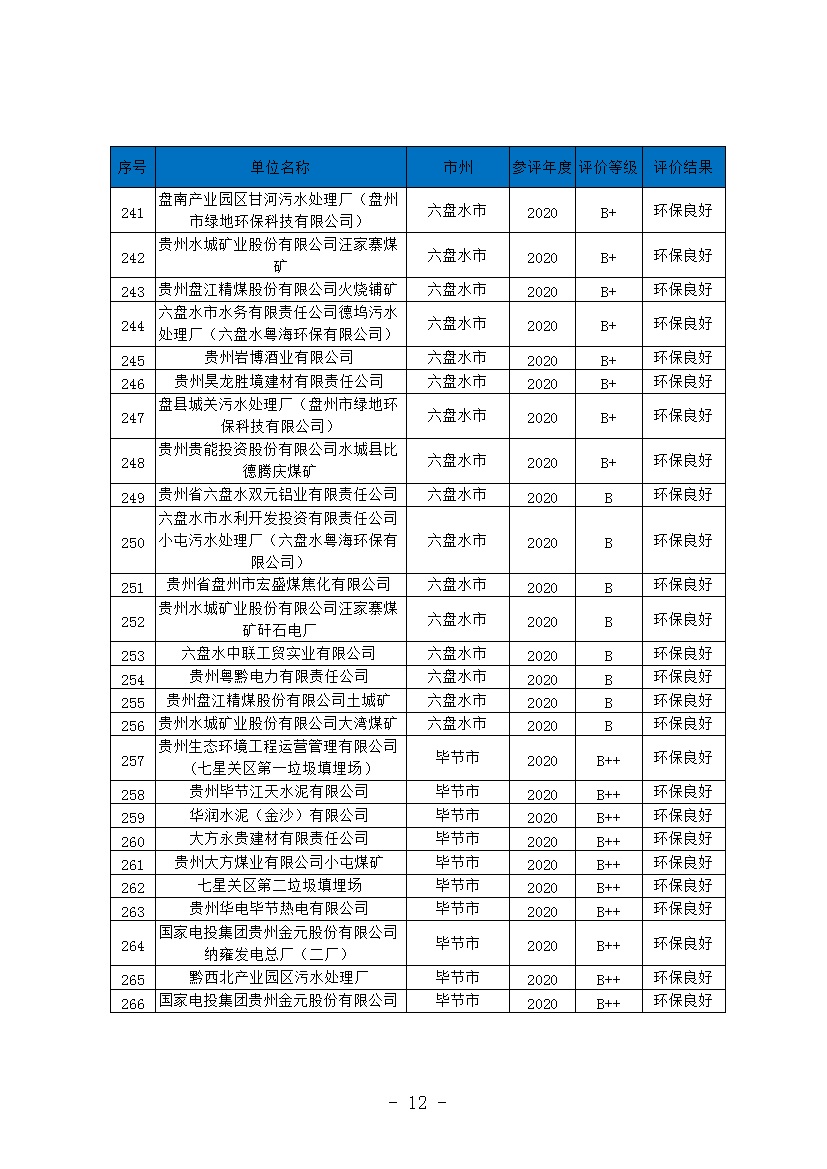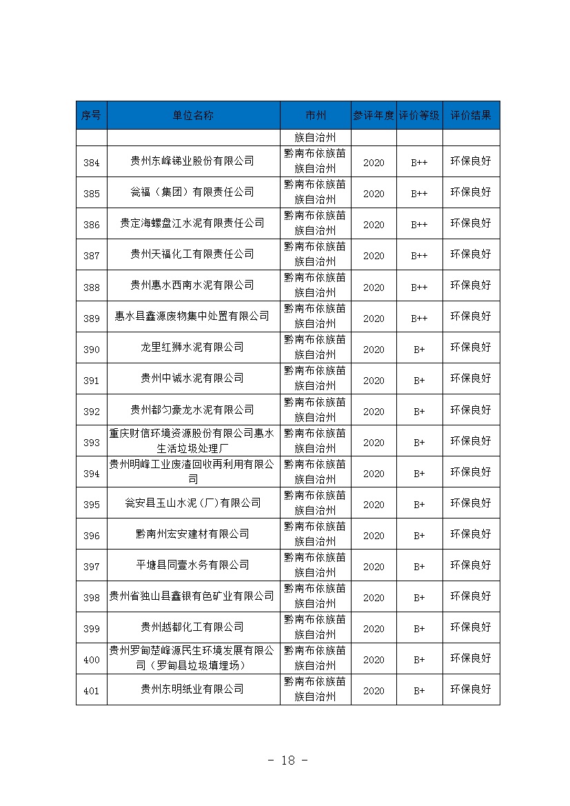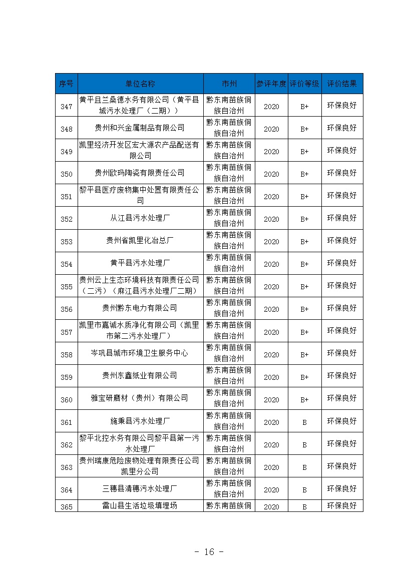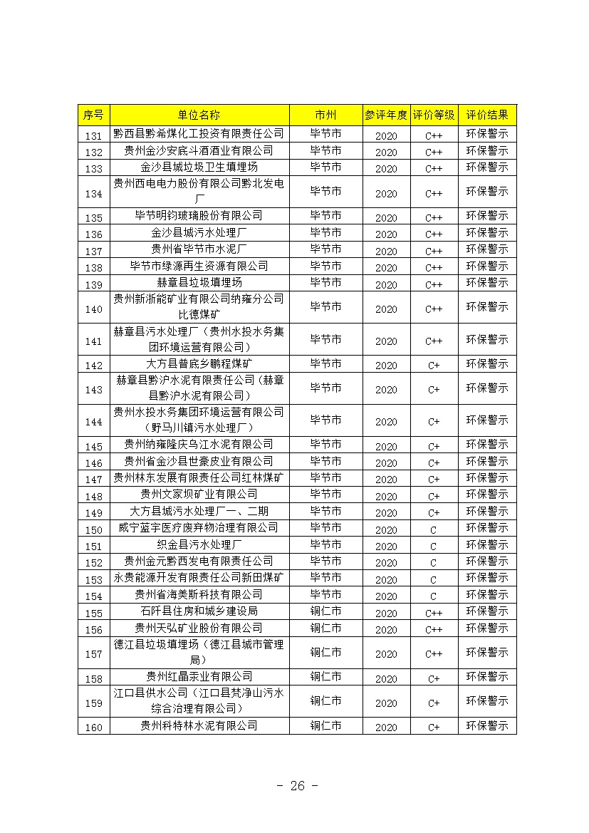 《貴州省2020年度全省重點排污單位環(huán)境信用評價初評結果》