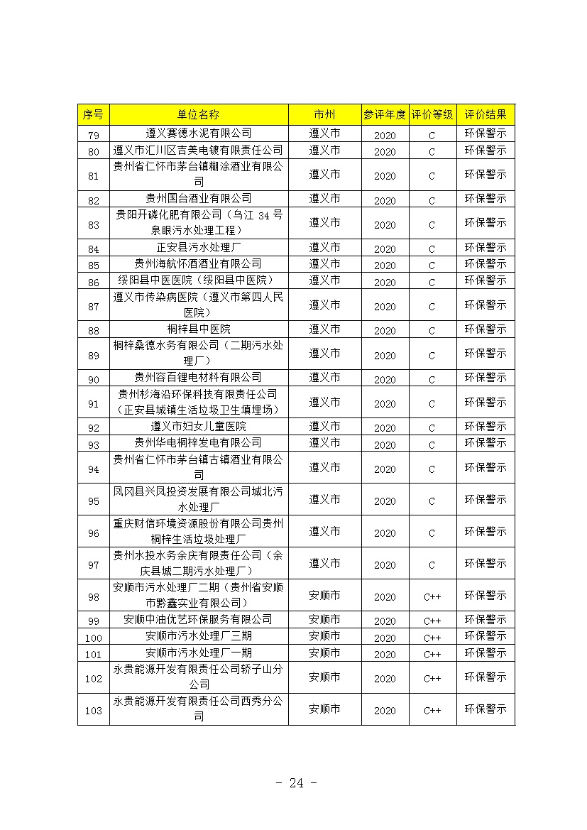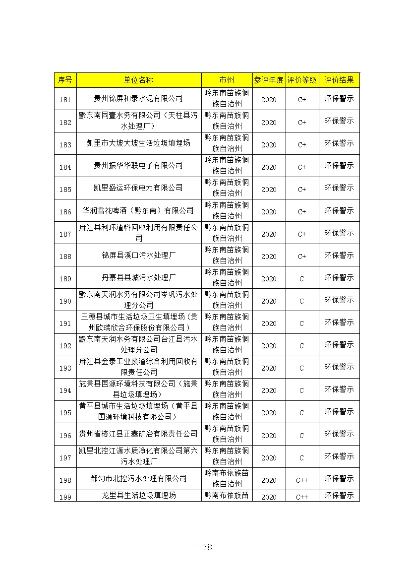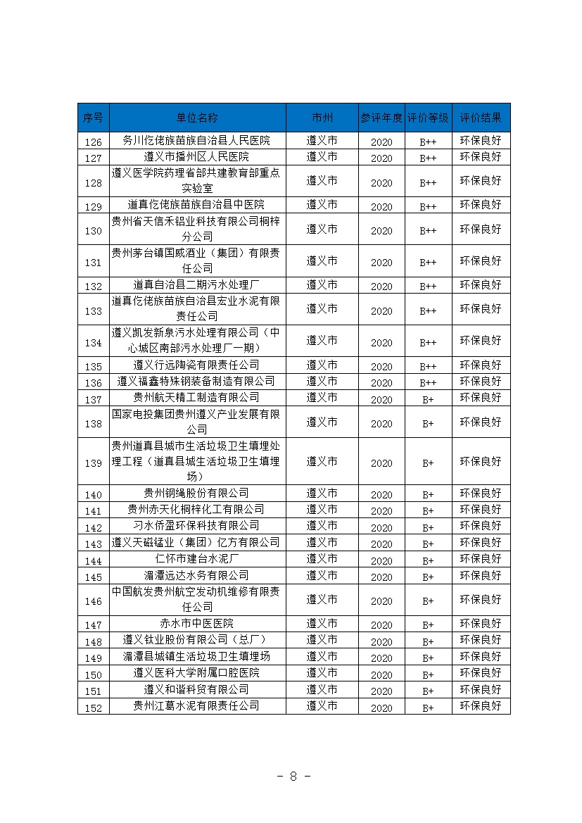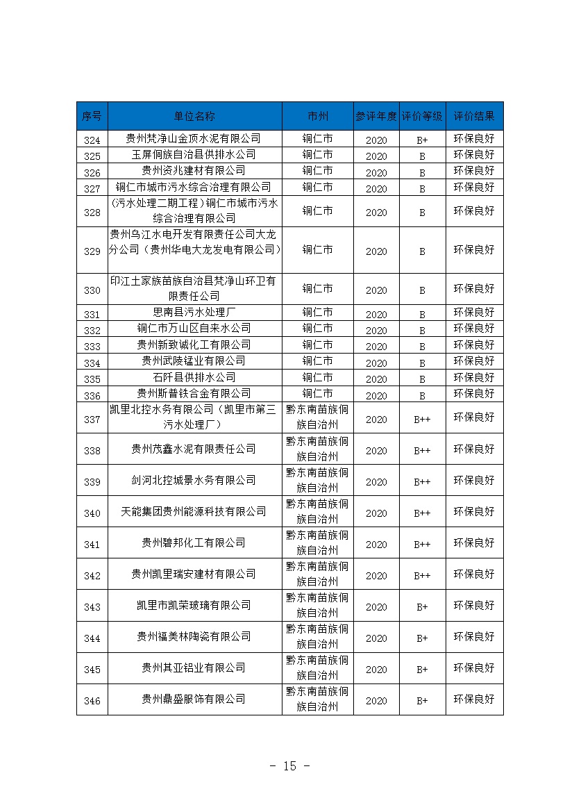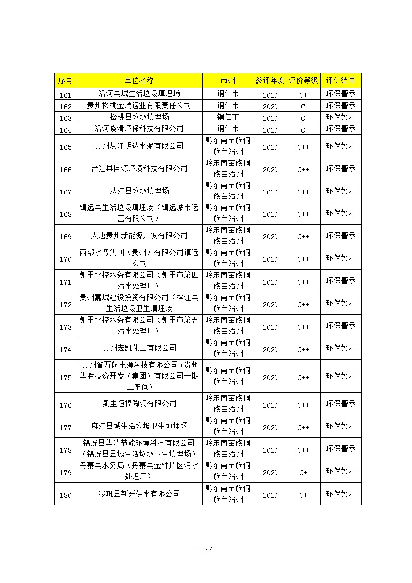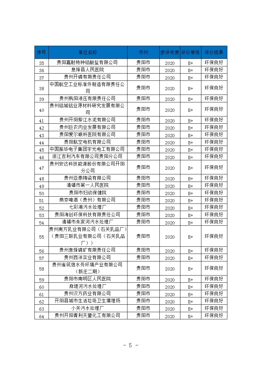 《貴州省2020年度全省重點排污單位環(huán)境信用評價初評結果》