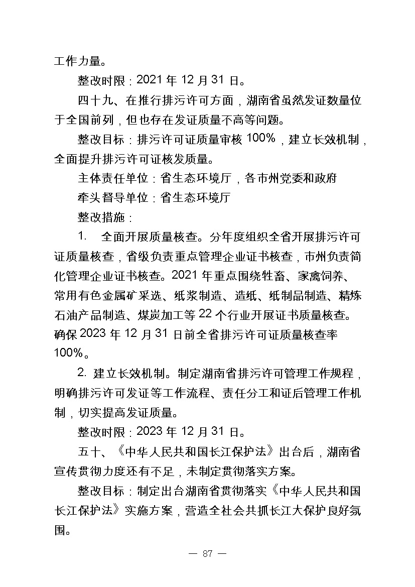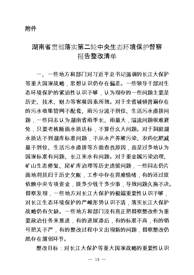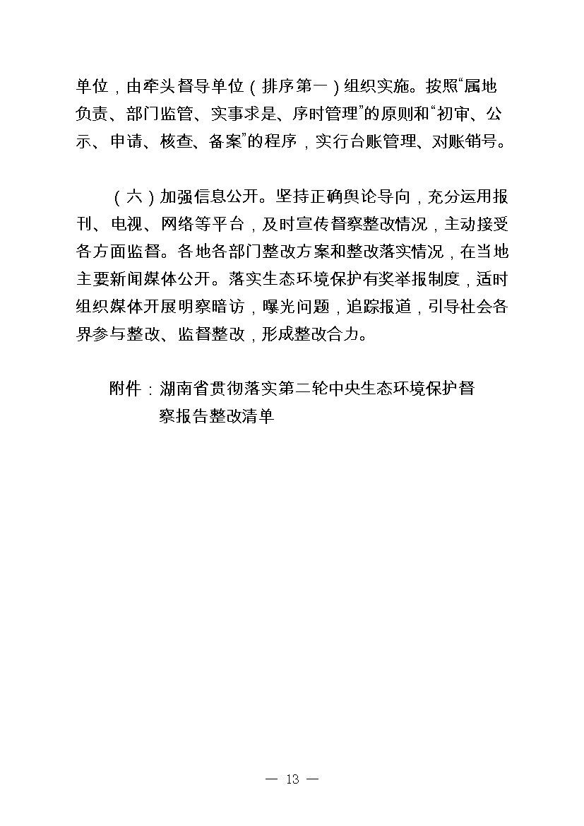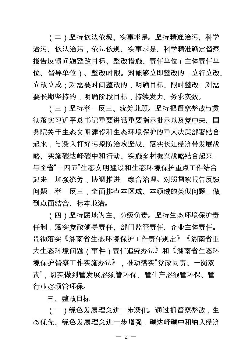 《湖南省貫徹落實(shí)第二輪中央生態(tài)環(huán)境保護(hù)督察報(bào)告整改方案》