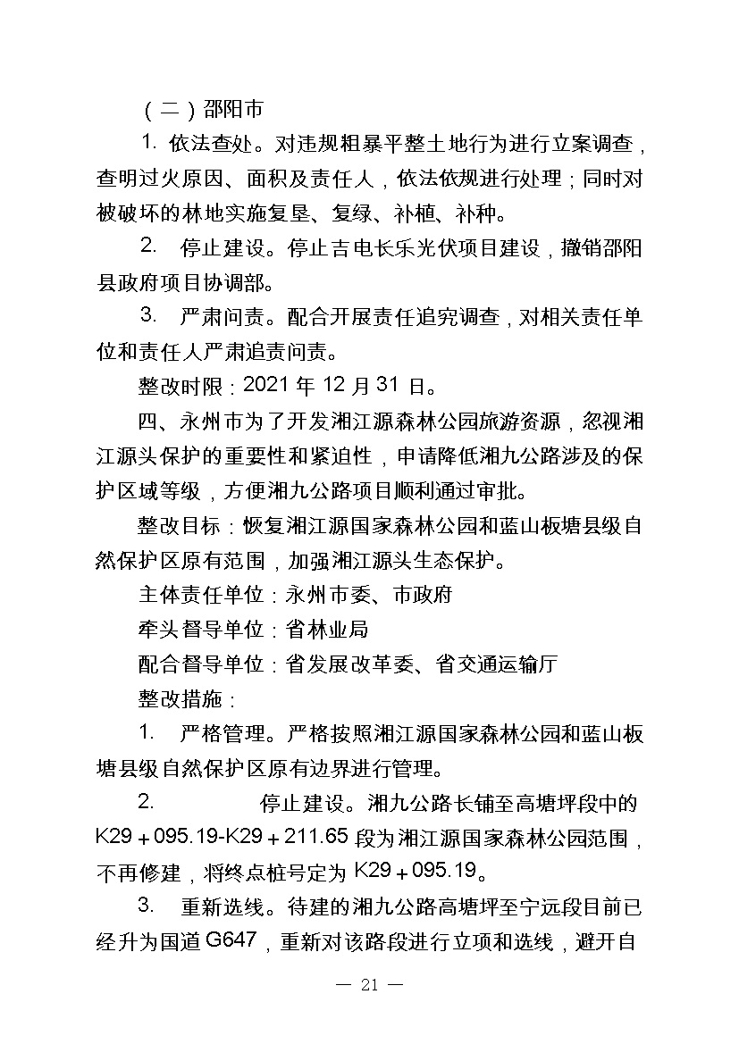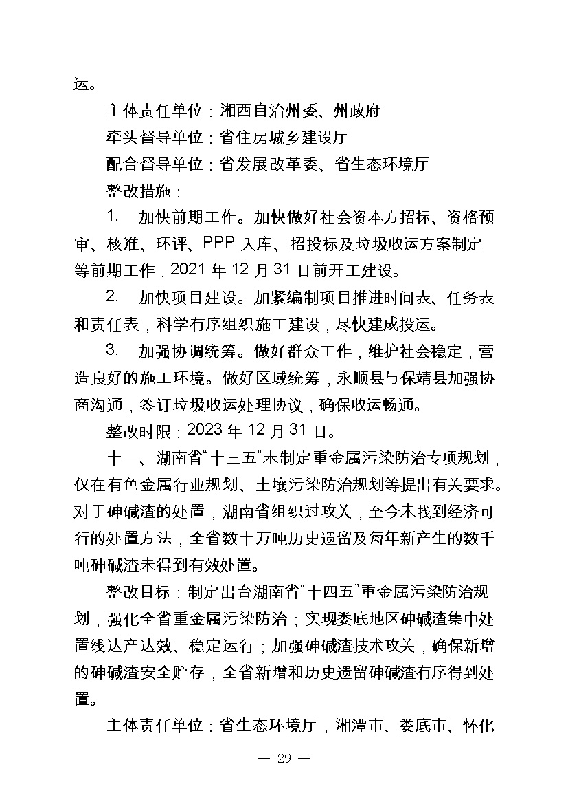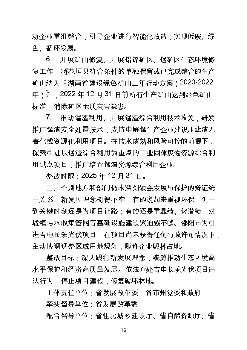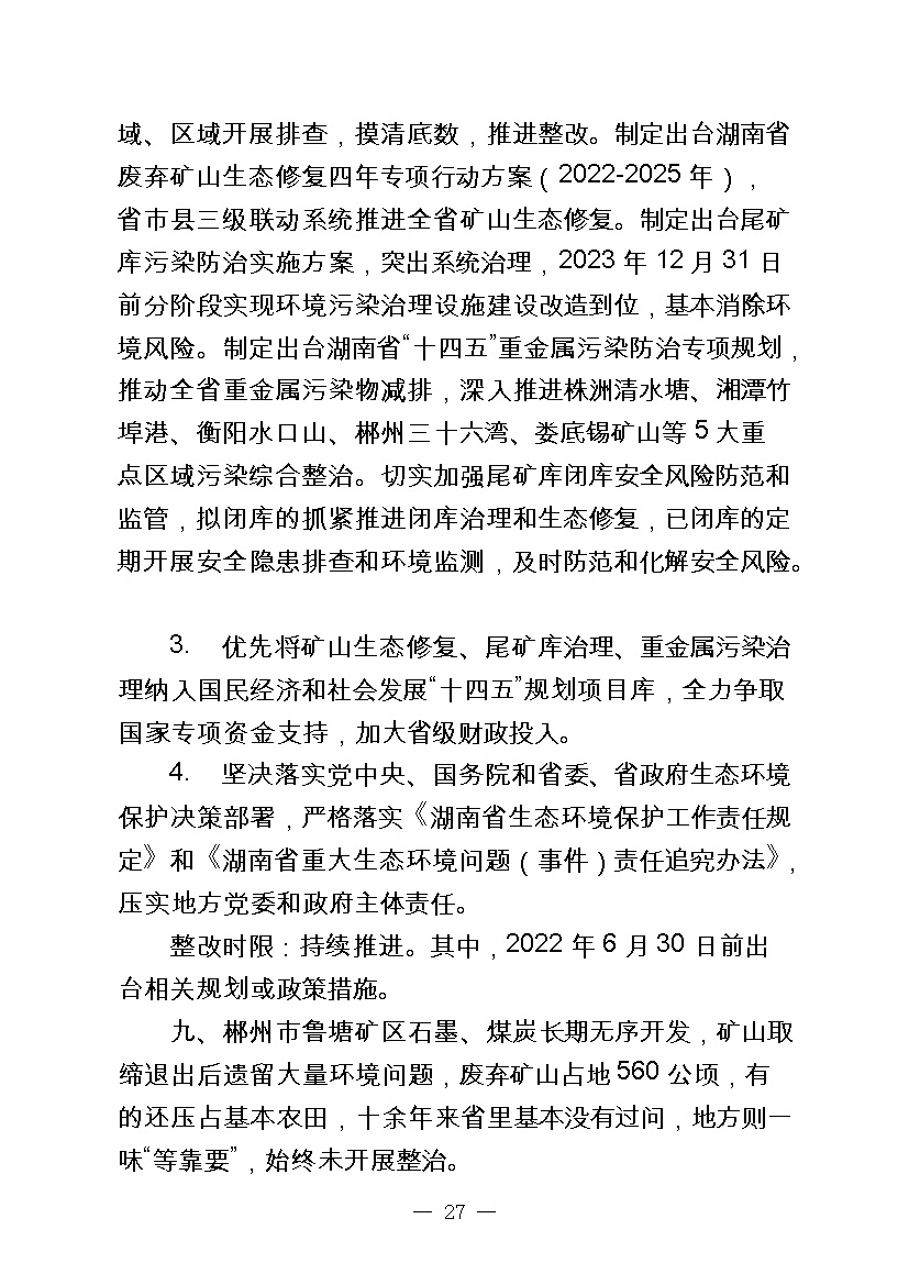 《湖南省貫徹落實(shí)第二輪中央生態(tài)環(huán)境保護(hù)督察報(bào)告整改方案》