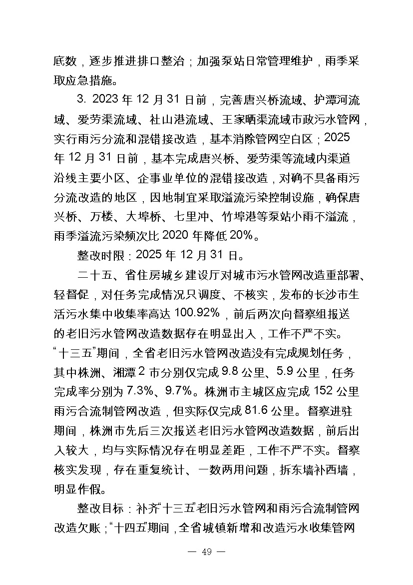 四是加強(qiáng)督導(dǎo)檢查。省委、省政府領(lǐng)導(dǎo)對(duì)各市州進(jìn)行聯(lián)片督辦,督導(dǎo)市州制定整改方案,細(xì)化整改任務(wù),推進(jìn)問(wèn)題整改。