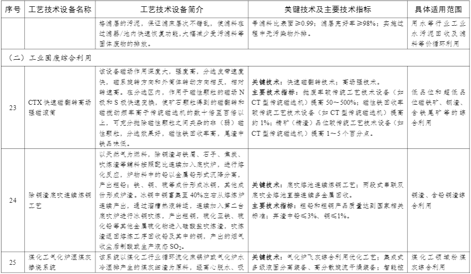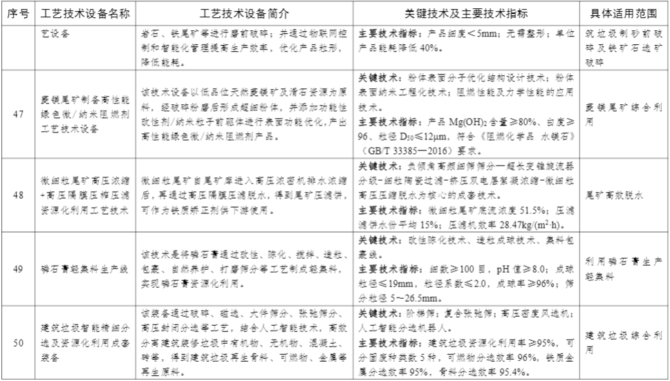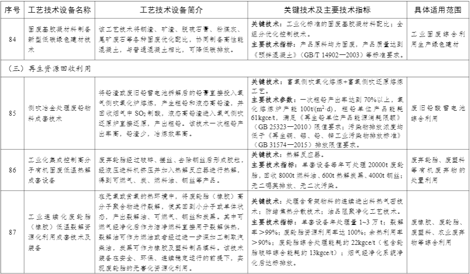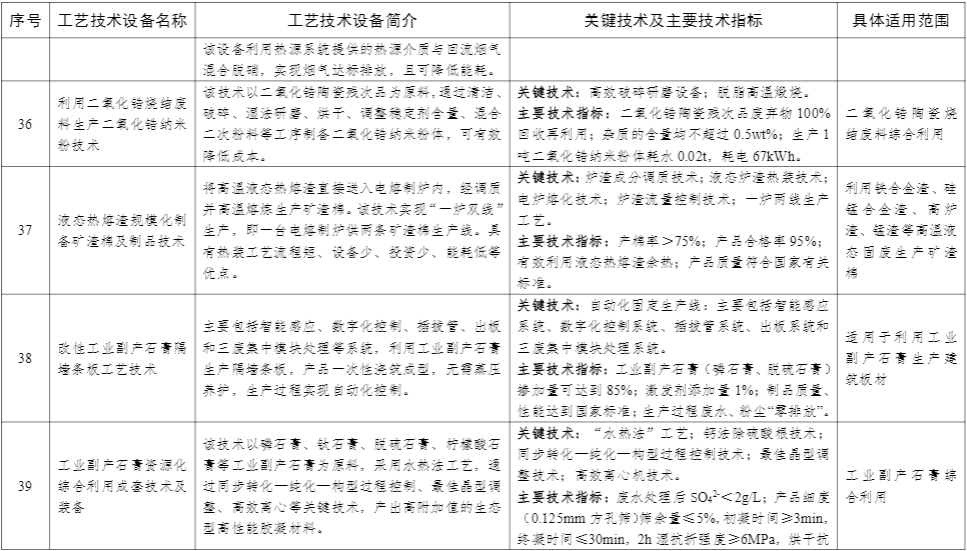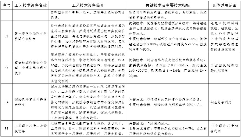 《國(guó)家工業(yè)資源綜合利用先進(jìn)適用工藝技術(shù)設(shè)備目錄(2021年版)》(工信部2021年第32號(hào))